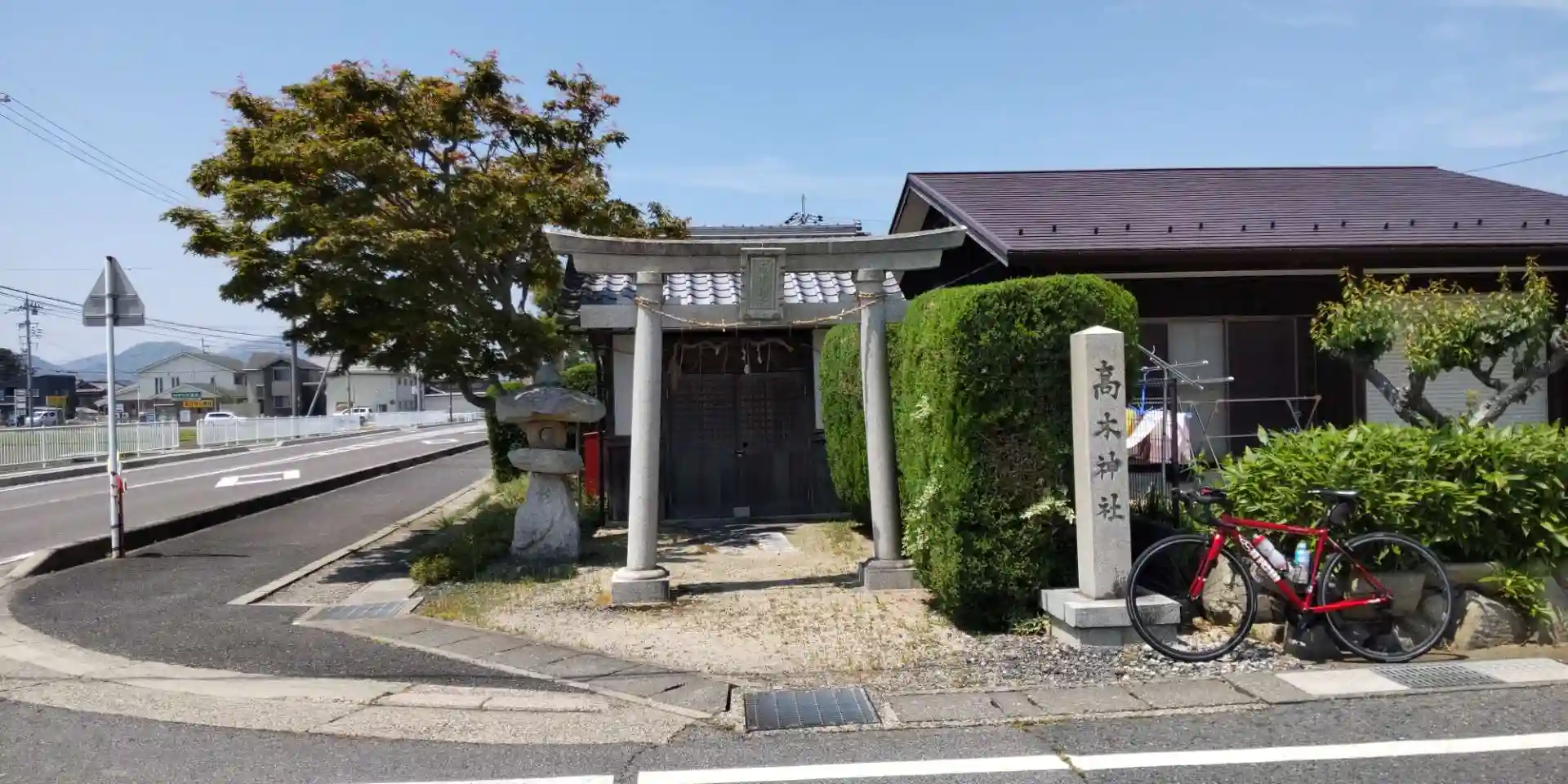小さな神社です。西の方に続く農道っぽい道の先にはこんもりした林と鳥居が見えました。あそこにも神社がありそう…でしたがそのまま安土の方に進みました。