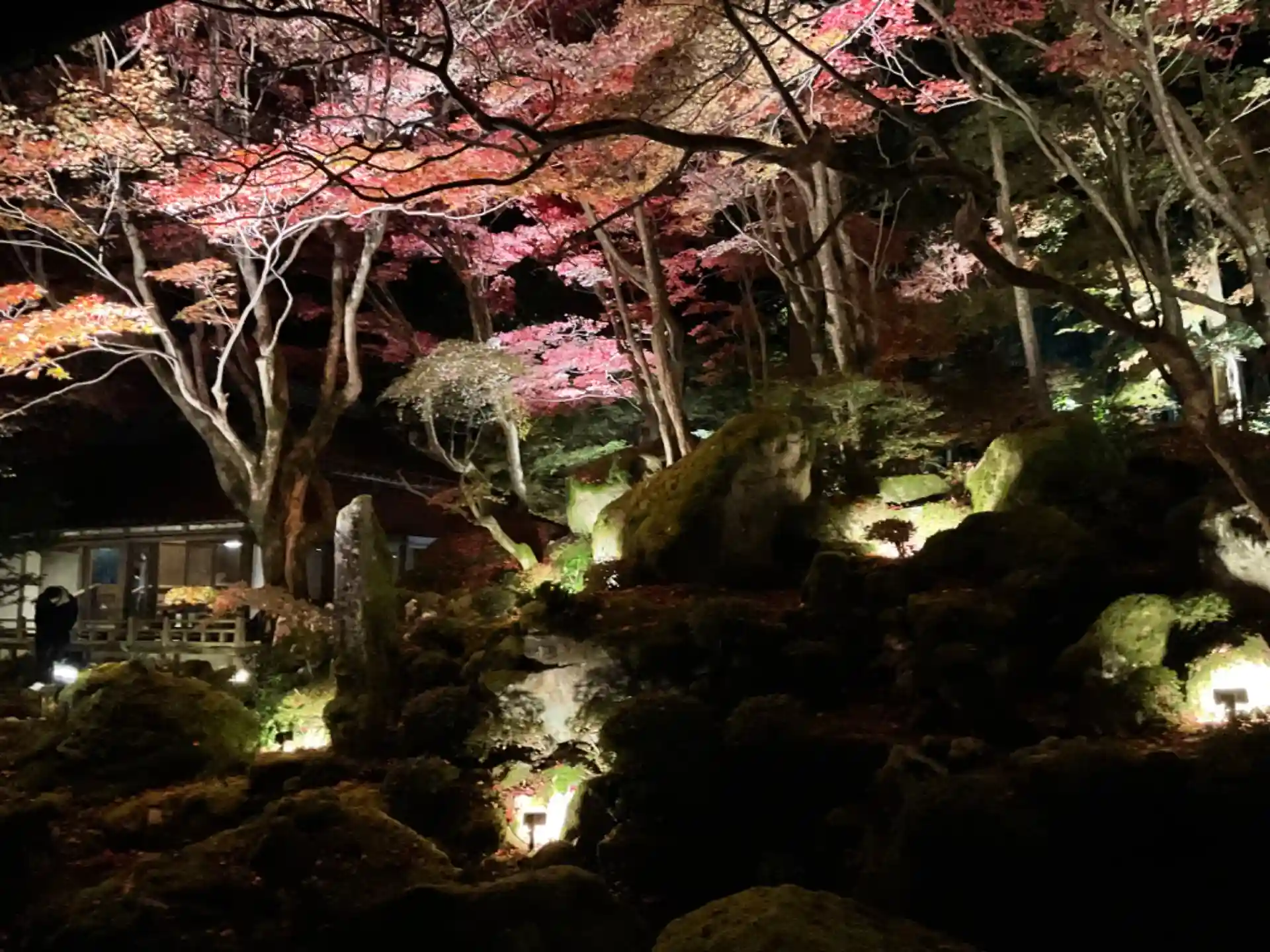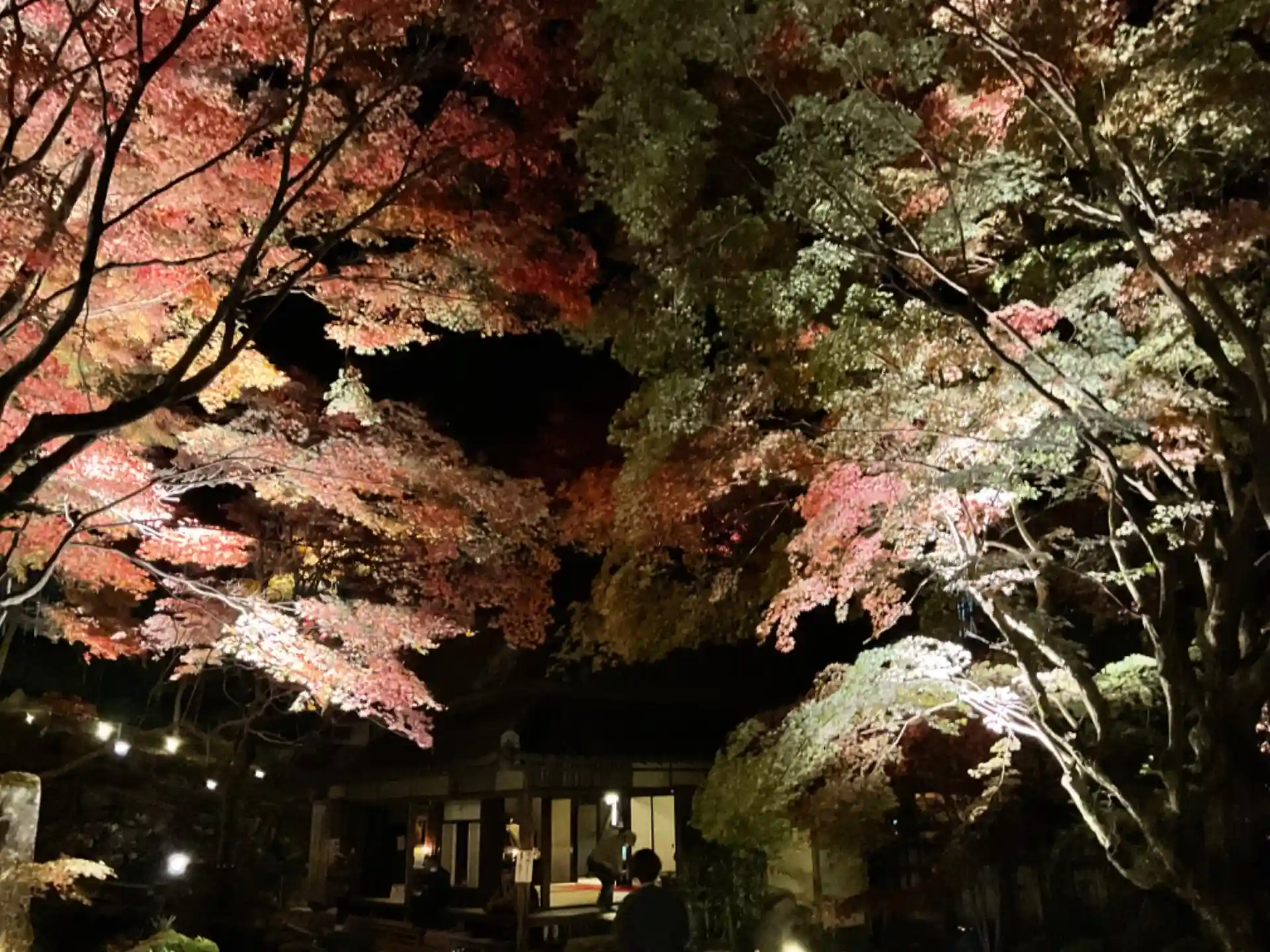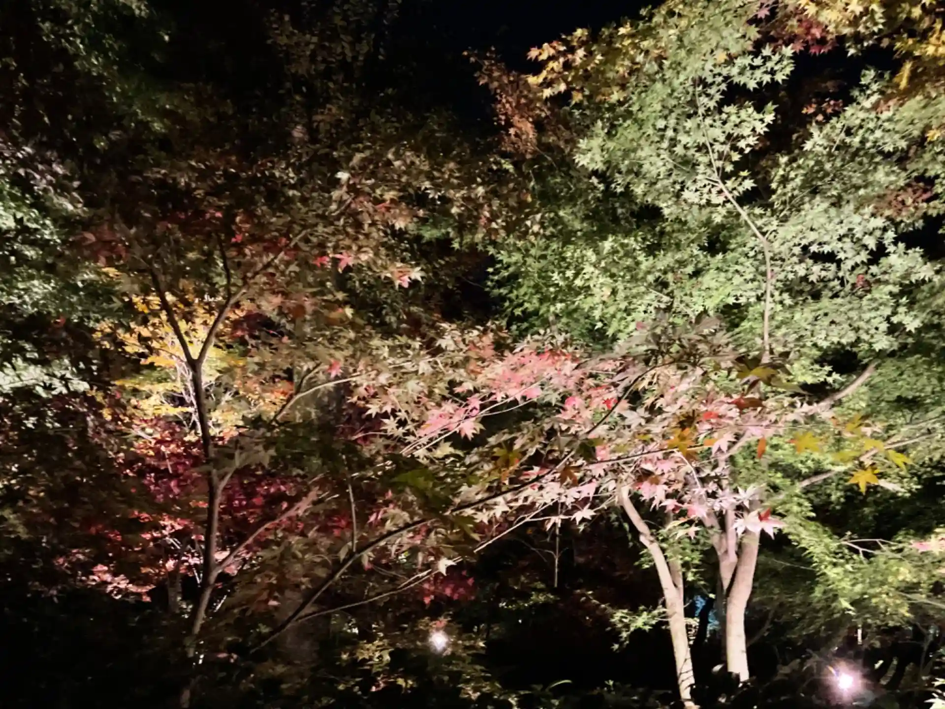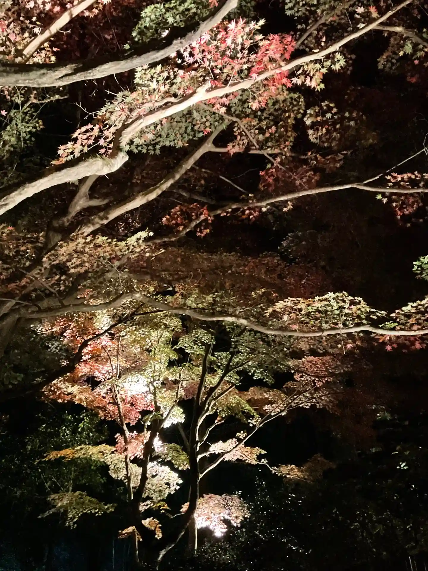 ライトアップされた紅葉。