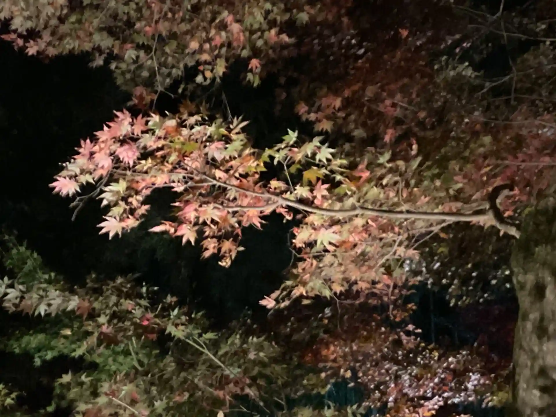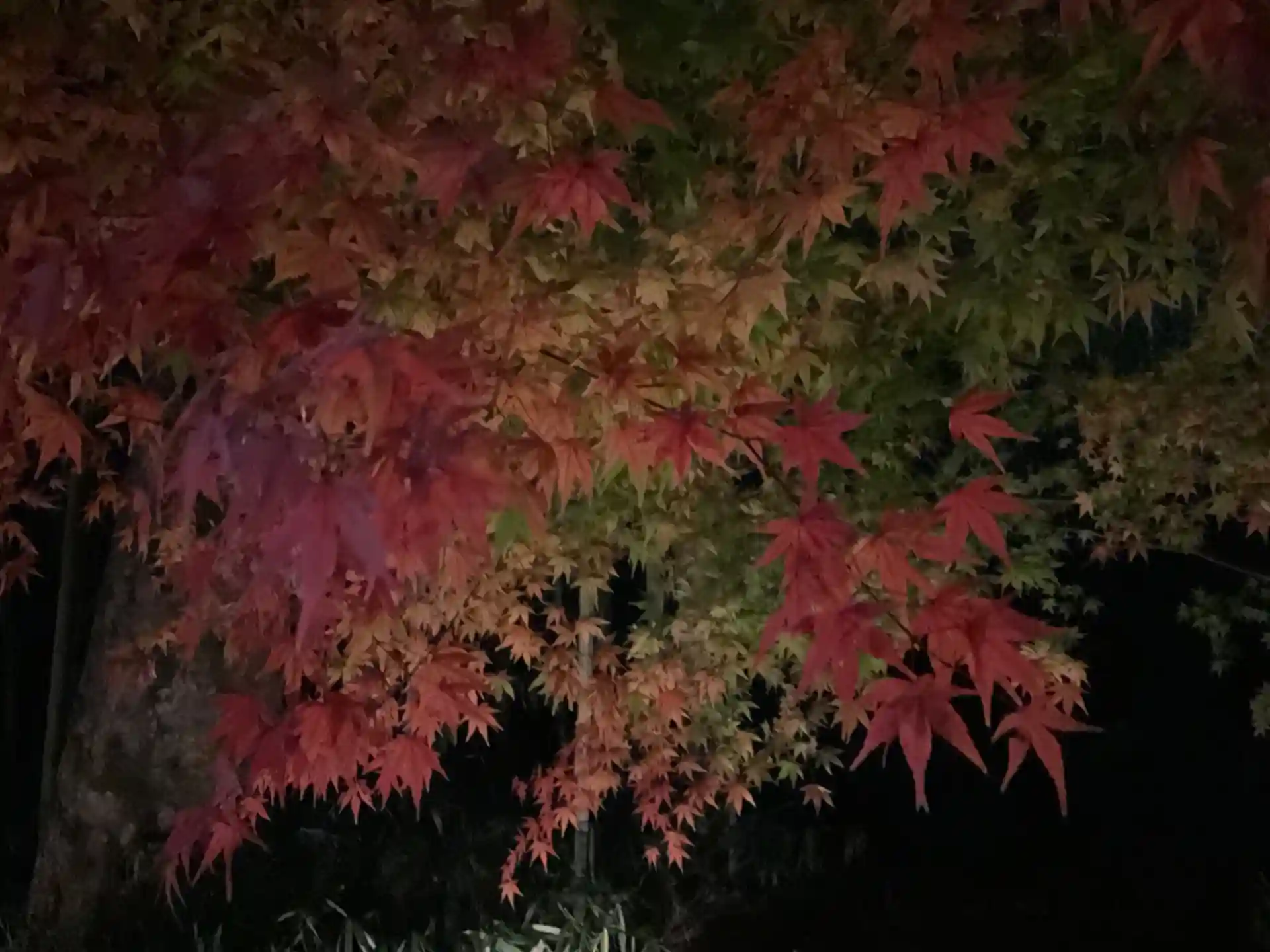 夜のモミジも「紅」がより濃く感じます。(それは暗いからでしょうか?)