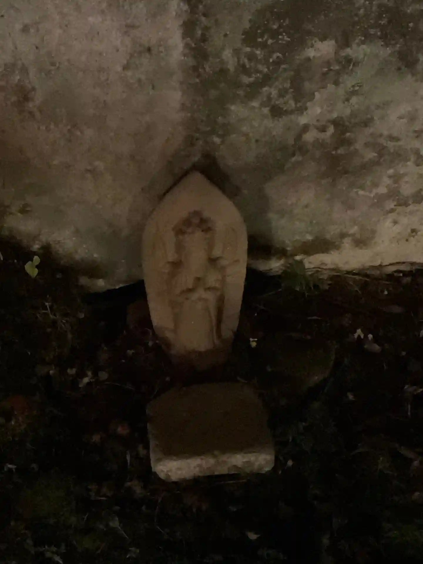 夜の洞窟に際立つ観音様。