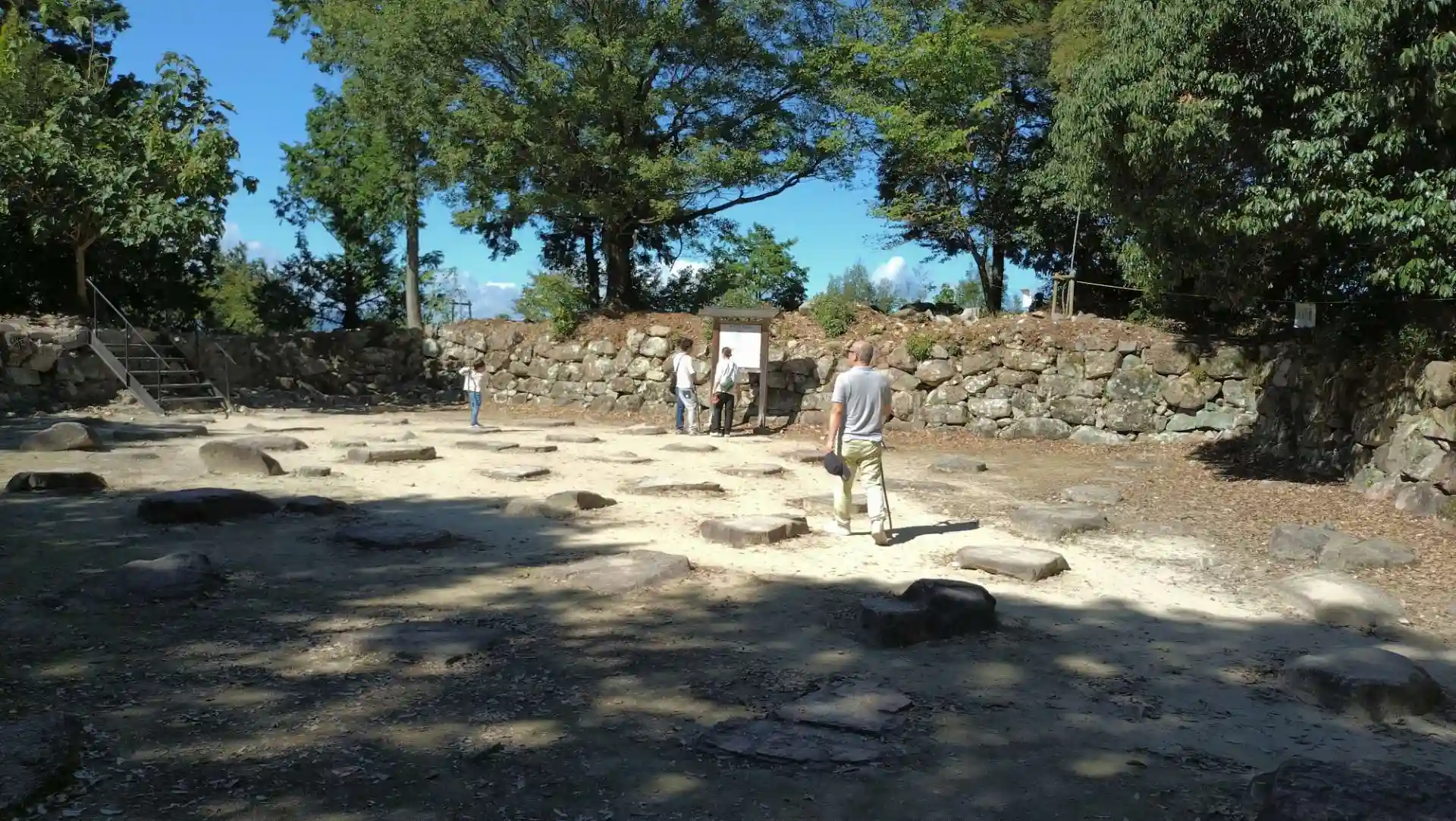 標高200m程度ですが、山城なのでスニーカーなどが適切だと思います(ヒール付の靴では危ない)