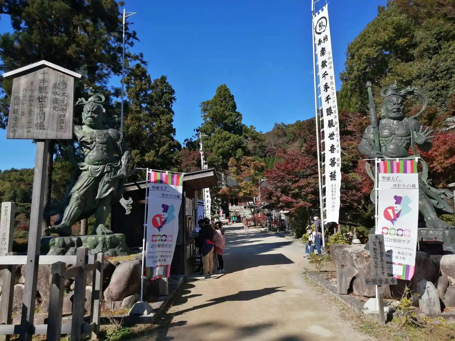 伝えによれば、605年に聖徳太子がこの地を訪れ、自ら彫った千手観音を祀ったのが始まりとの事である。(湖東地域には聖徳太子の伝承が多数あり、あながち作り話だけではないかもしれない。)