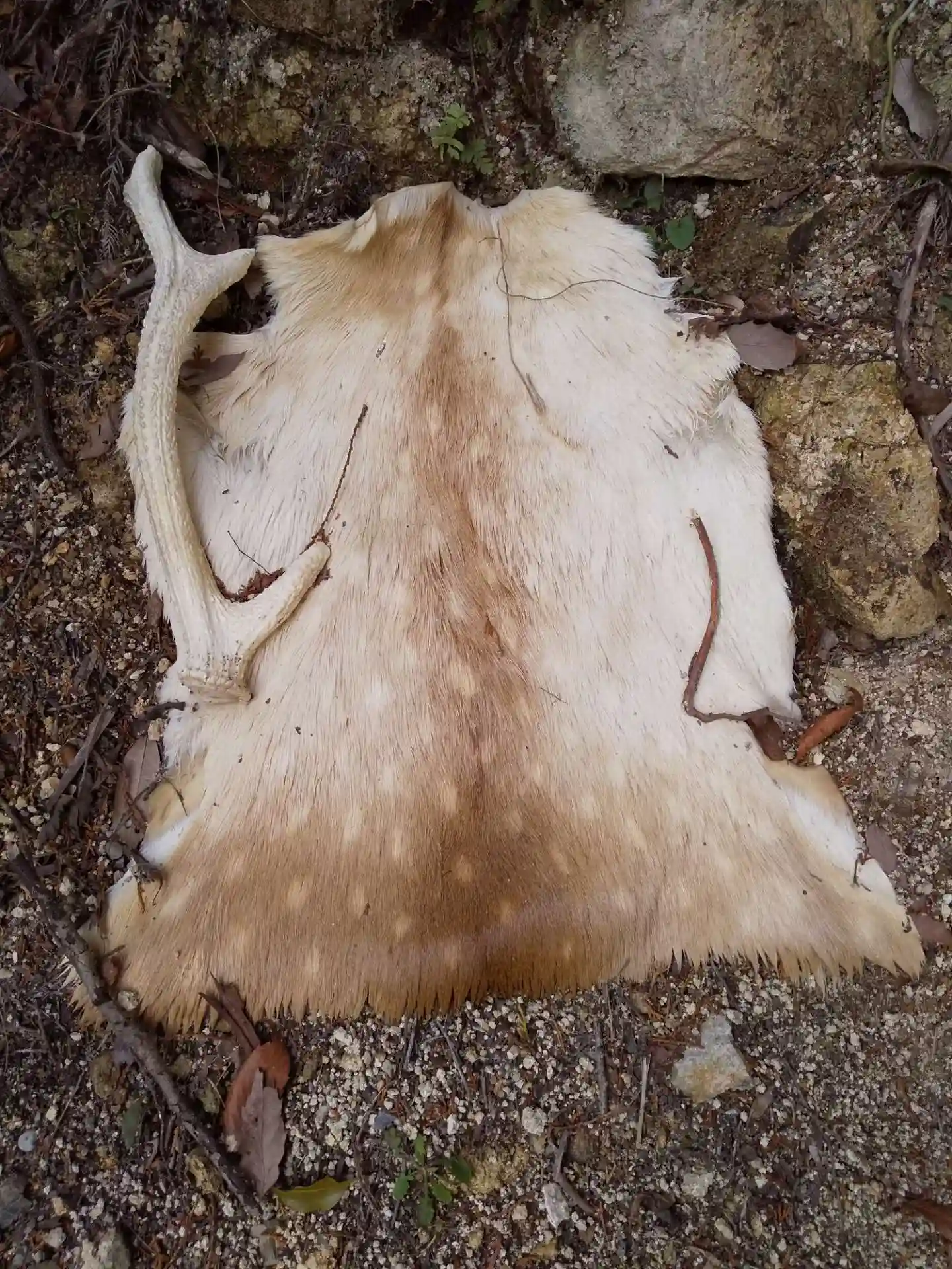 駐車場の端に鹿の角と皮が・・🦌😣