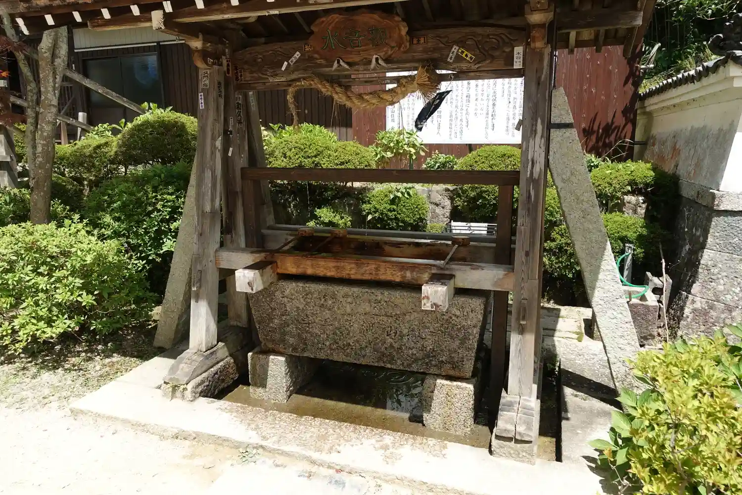 巨岩の壁の麓にある<水かけ観音>。