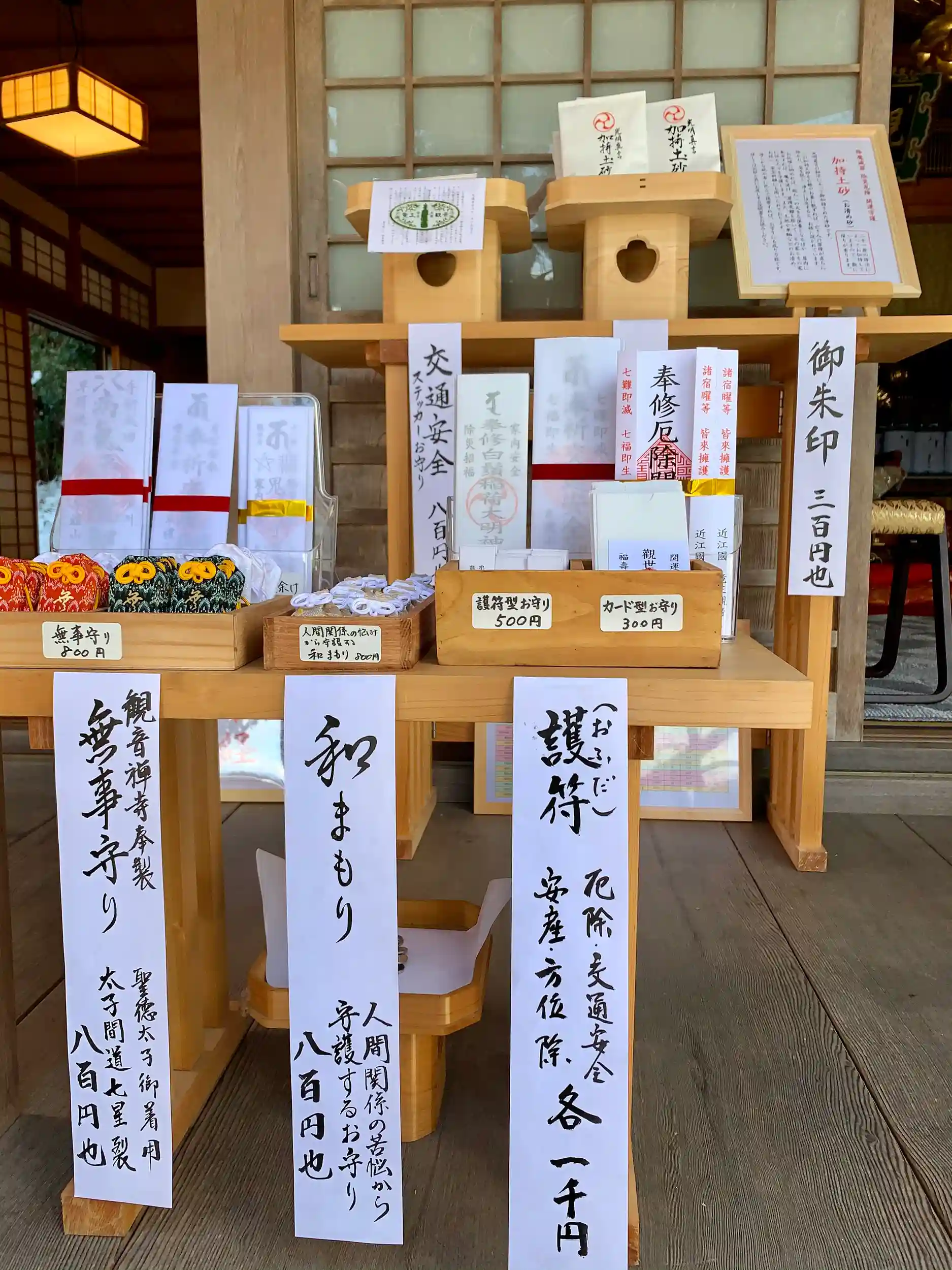 そのほか、聖徳太子がご使用になっていたことから「太子間道」と名付けられる天平の裂を復元した製で袋が作られた「無事守り」、聖徳太子が彫られた秘仏本尊の御影に仏法守護(竜王町のシンボルでもある)双龍が金で描かれたオシャレな「交通安全ステッカーお守り」がおすすめです。