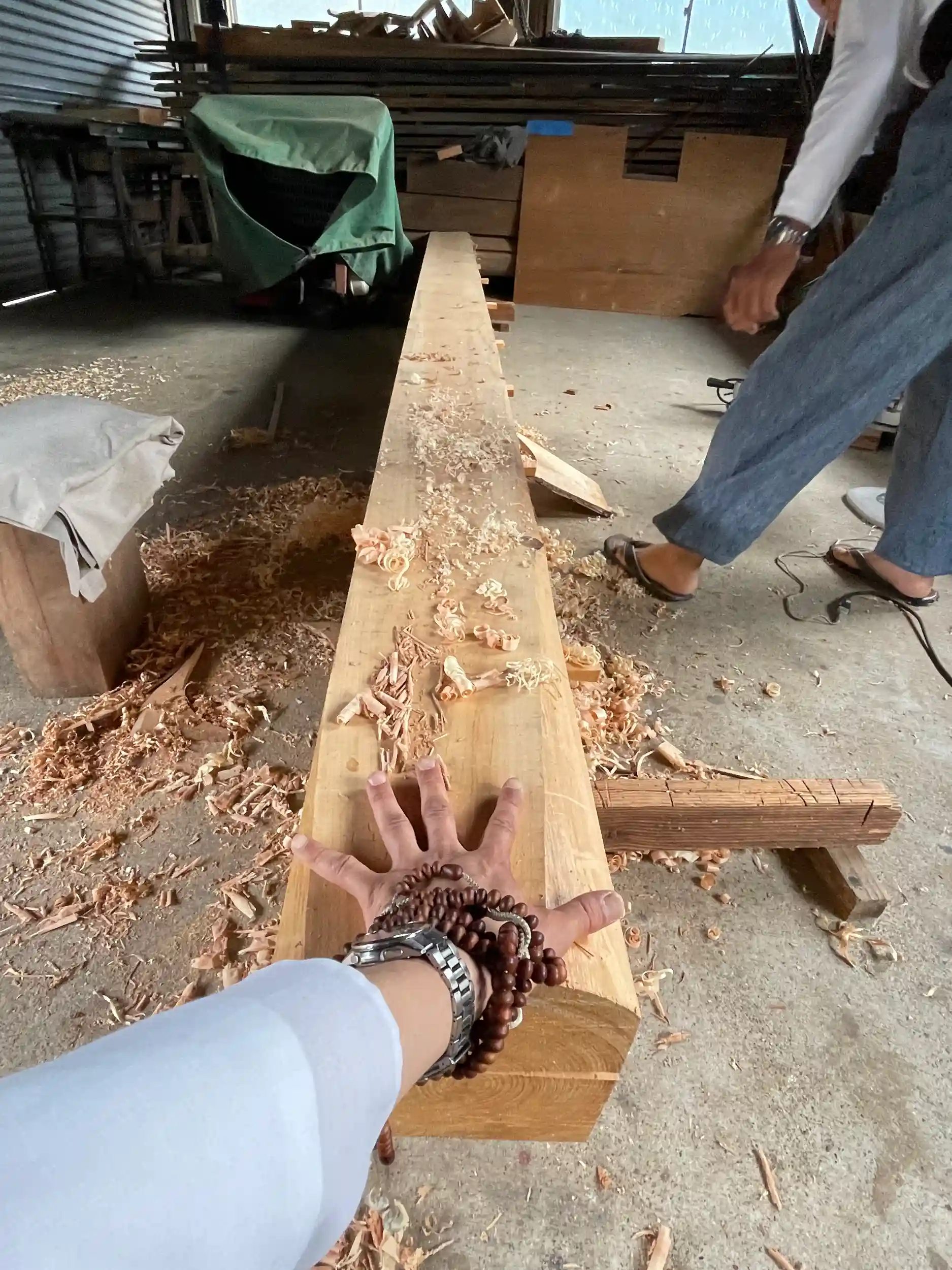 現状では少し節があるが、弊寺の境内から切り出した檜。大切に使いたい。