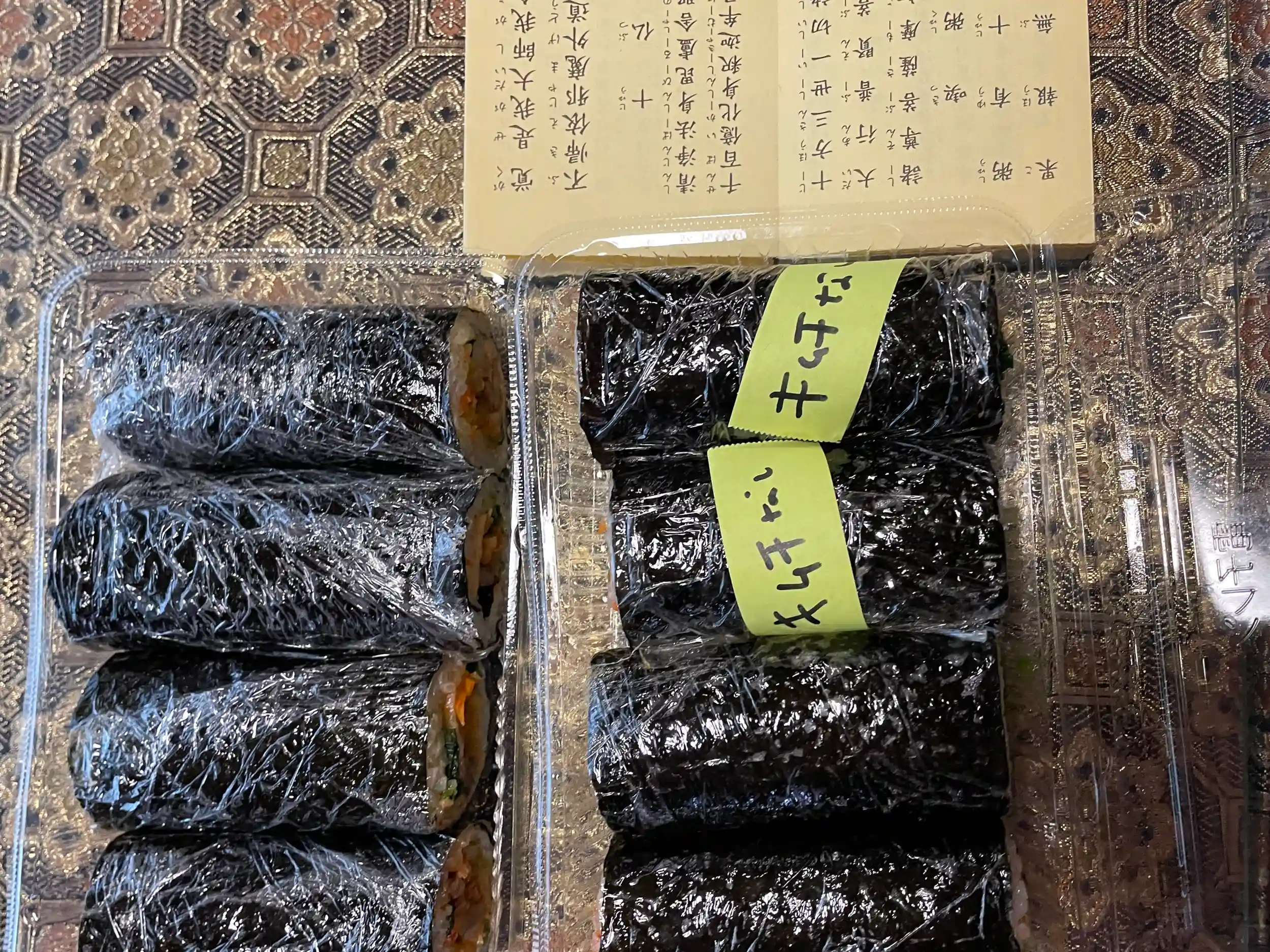 斎座(昼食)は弟子の手作りキンパを今年の恵方(南南東)に向かって黙食。