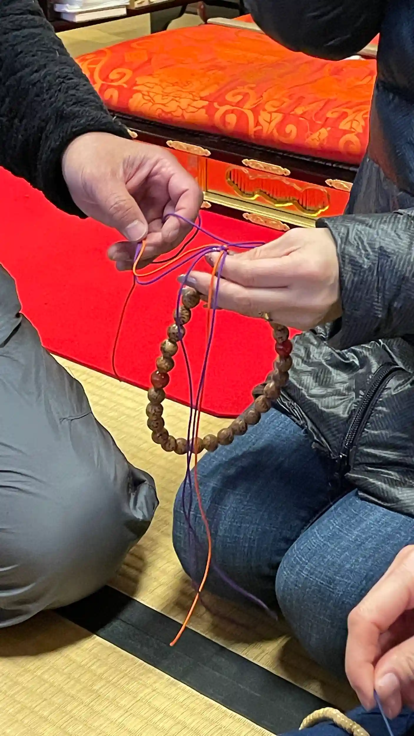 みんなでワイワイ楽しく数珠の緒の結び方を教わりました🍀✨