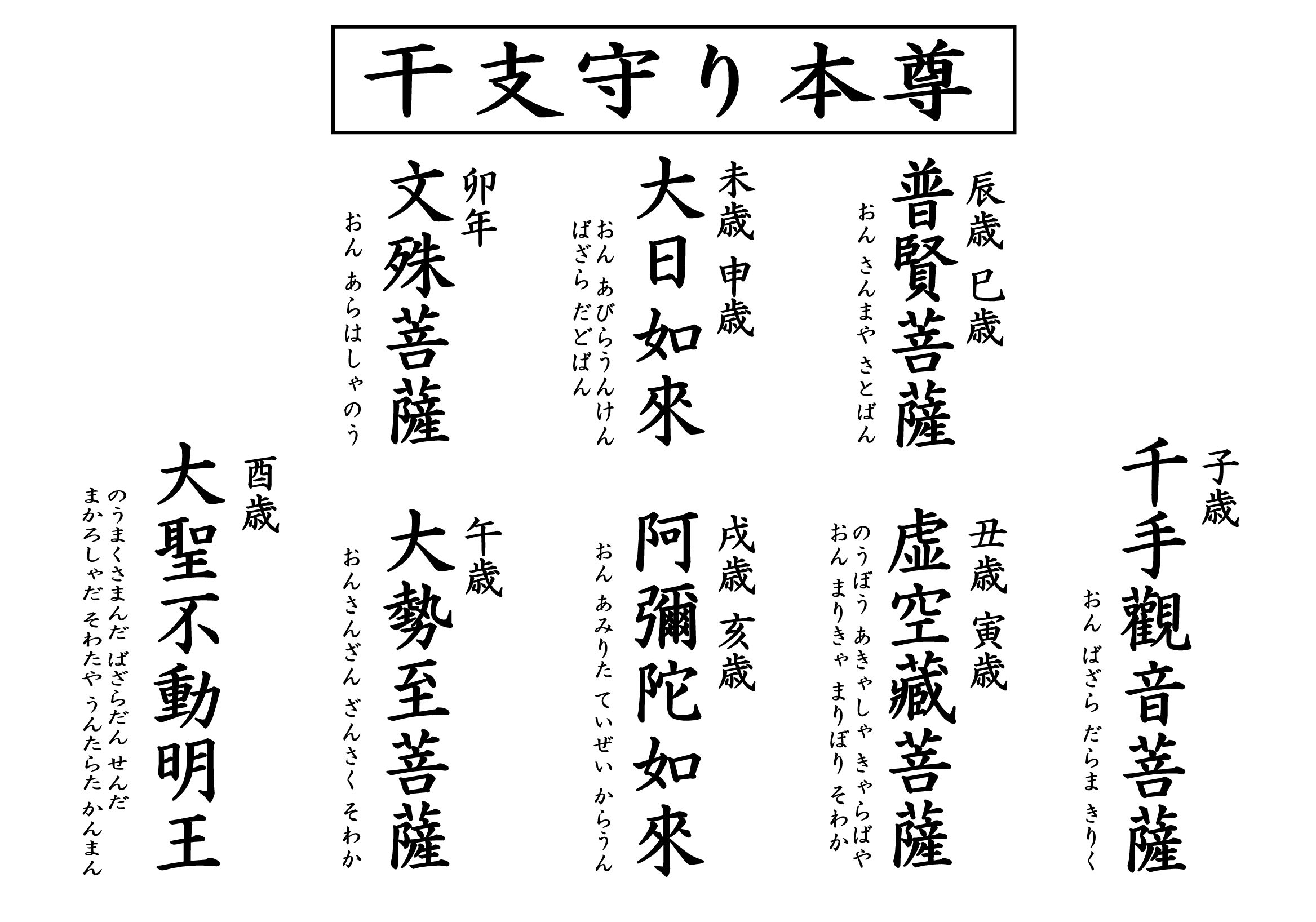 「厄除け十二支守護仏」は、生まれ年(十二支)の守り仏さま。