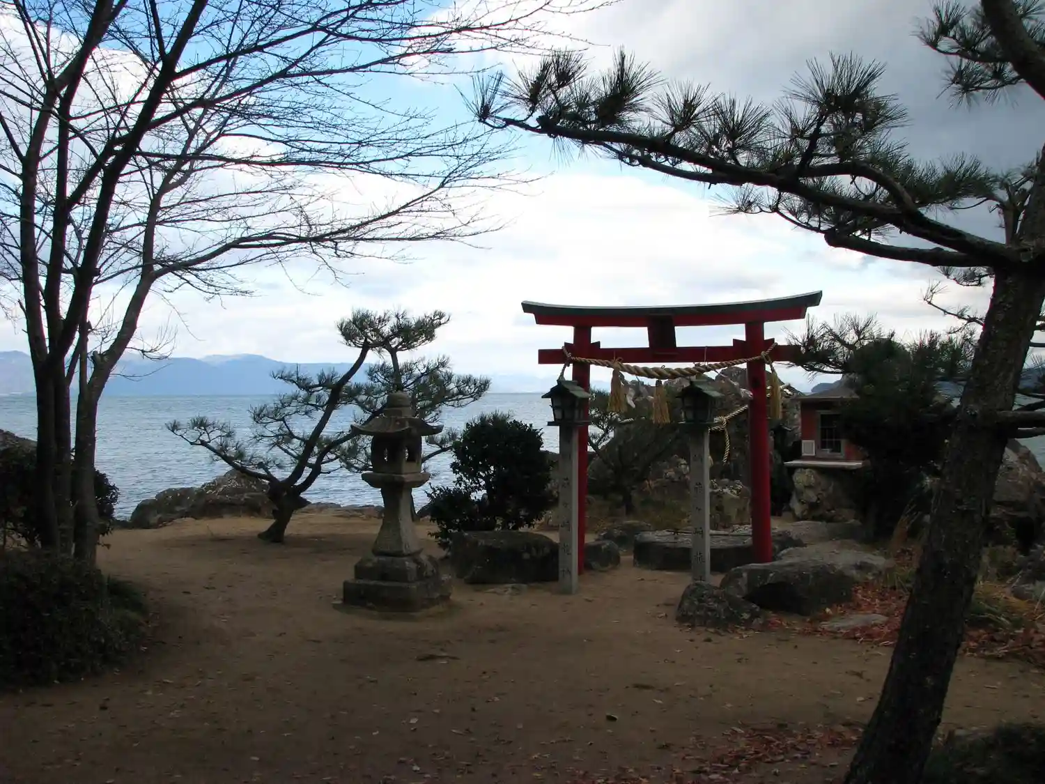 「下宮」です。琵琶湖に向かって鳥居と祠があります。