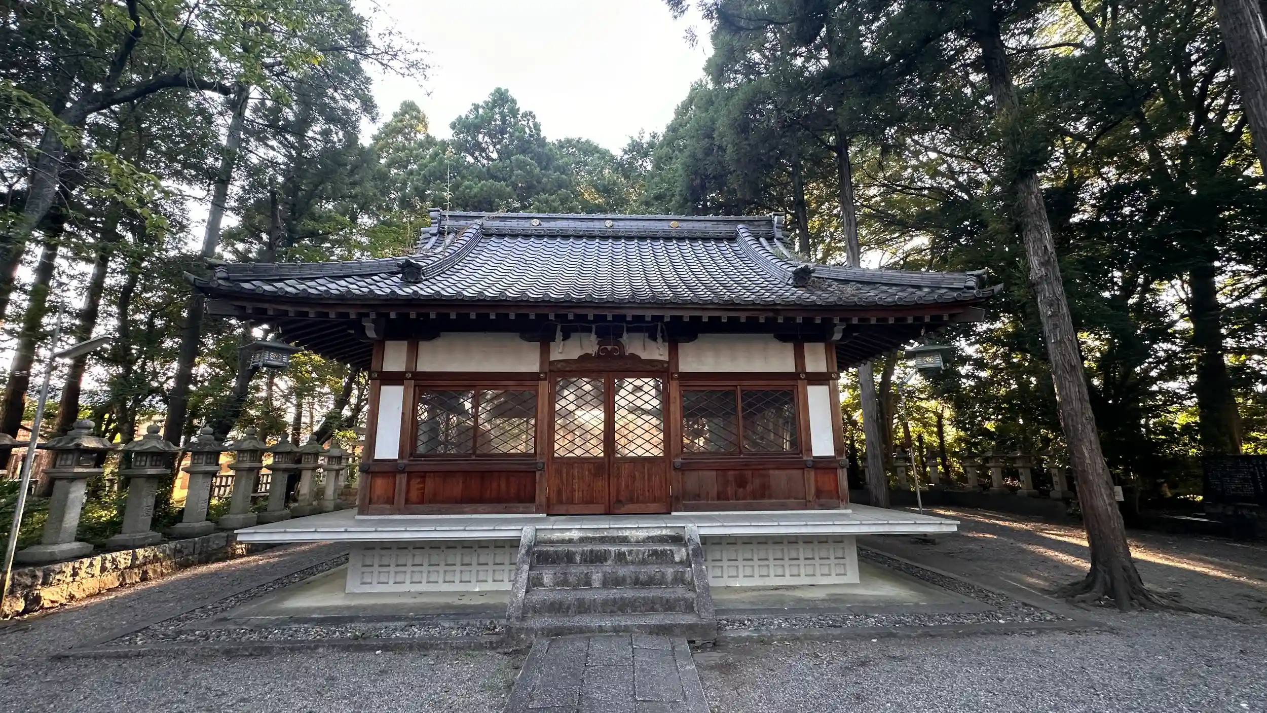 御祭神 瓊々杵尊 スメミマジンジャと読みます。〔本殿〕三間社流造 間口一間 奥行一間 〔拝殿〕入母屋造 間口二間三尺 奥行二間