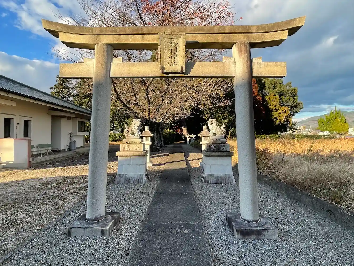 すぐ隣りに地区の集会所の様な場所があったので、車を停めさせて頂き参拝しました。
