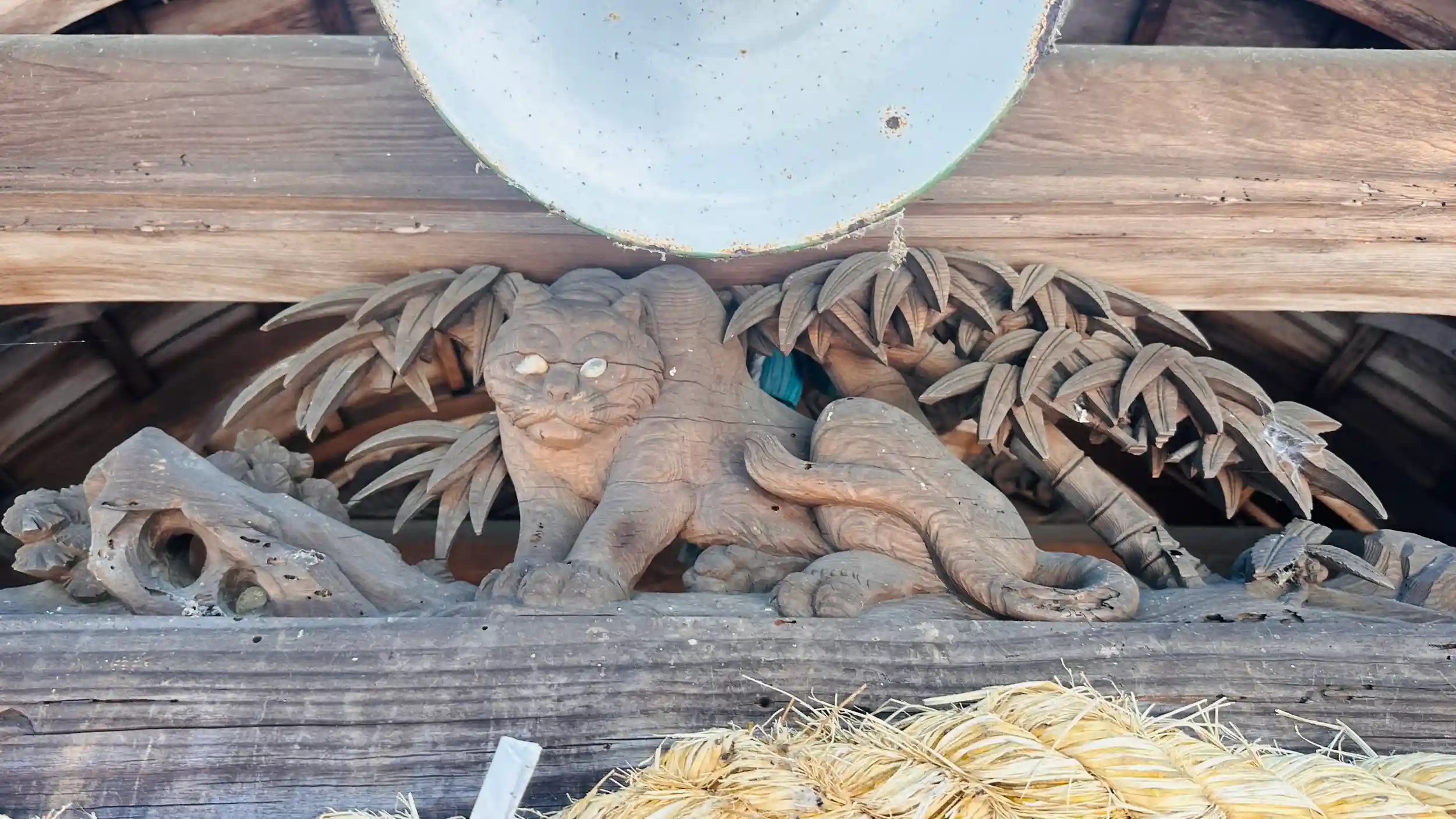 御祭神は、天照大神 国常立尊 本殿は、三間社春日造銅板葺、唐破風付でとても立派で、また身舎柱は欅材で間口3間奥行2間の一室とし,正側面に縁を巡らし,正面には1間の向唐破風を設ける。組物は出三斗とし,軒は二軒繁垂木,背面妻は豕扠首組,屋根は銅板葺である、蟇股、兎の毛通しの彫刻もあります