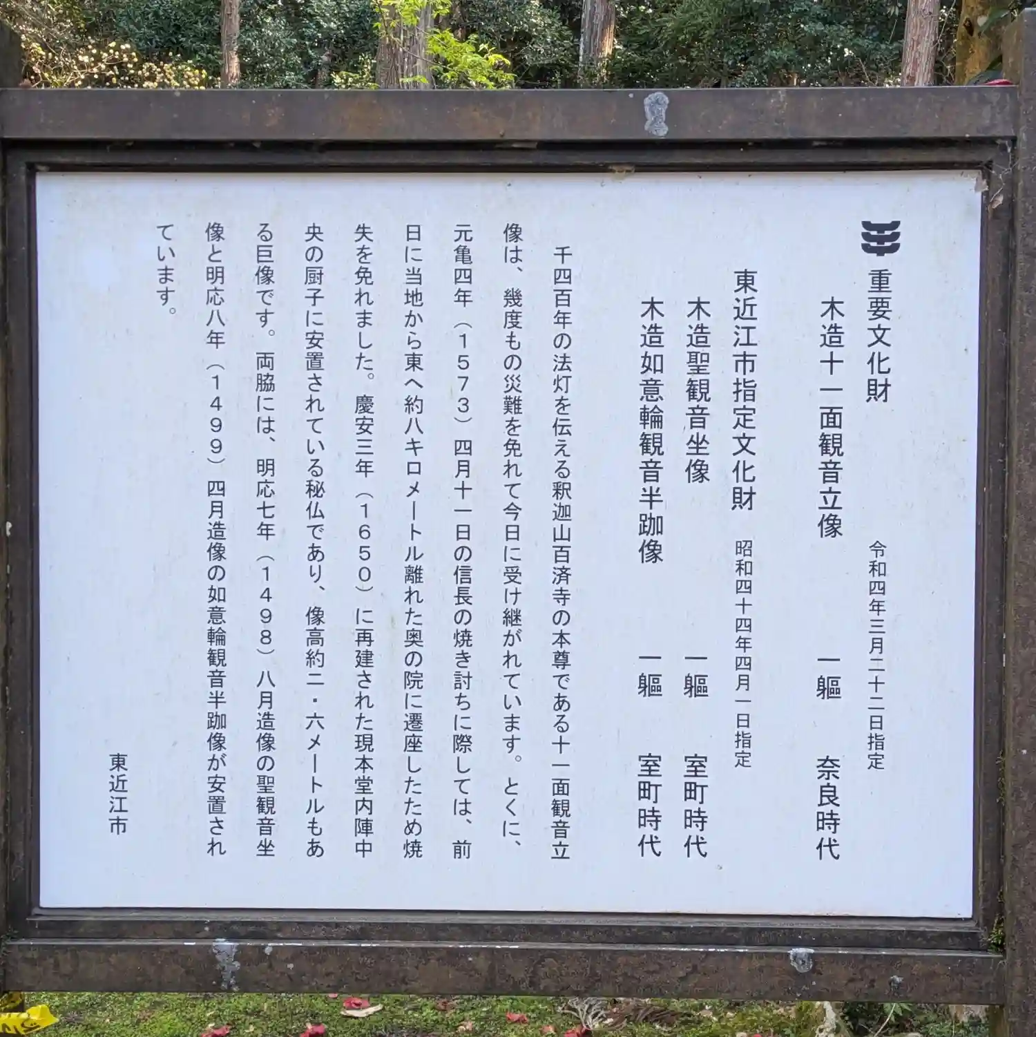 近江西国三十三観音霊場16番、湖国十一面観音菩薩霊場10番、聖徳太子霊跡34番、びわ湖百八霊場64…