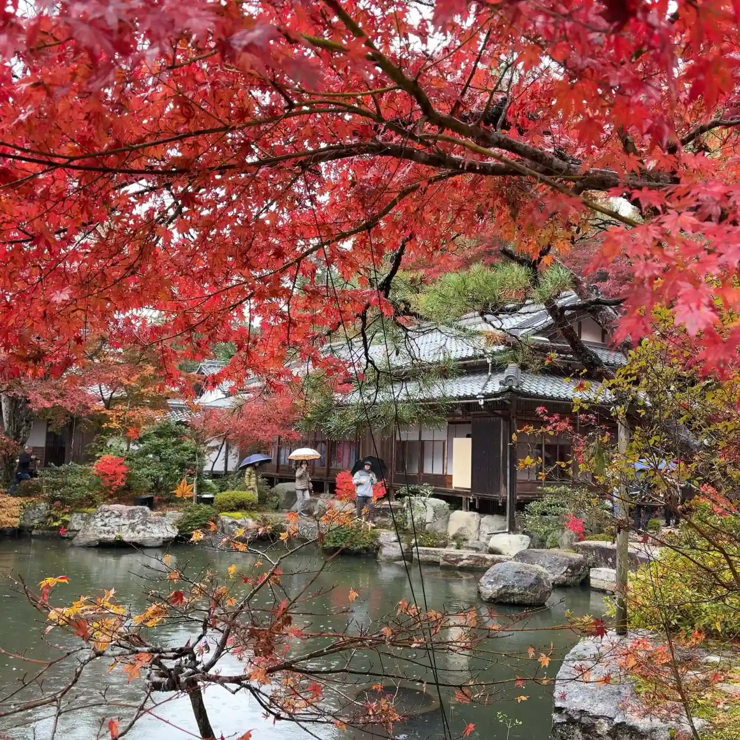 庭園。赤が映ってきれいです。