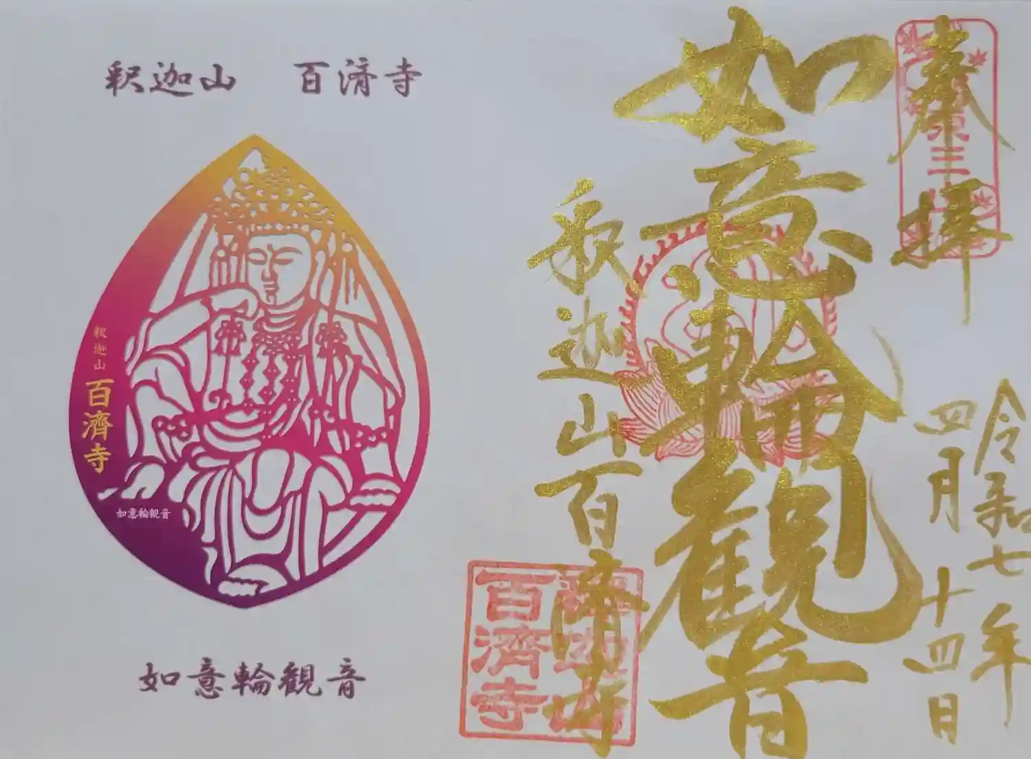如意輪観音様の御朱印をいただきました。