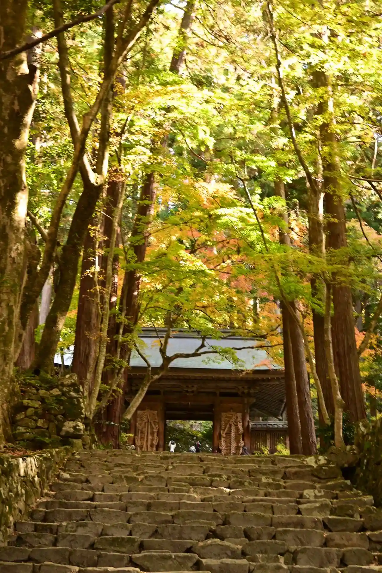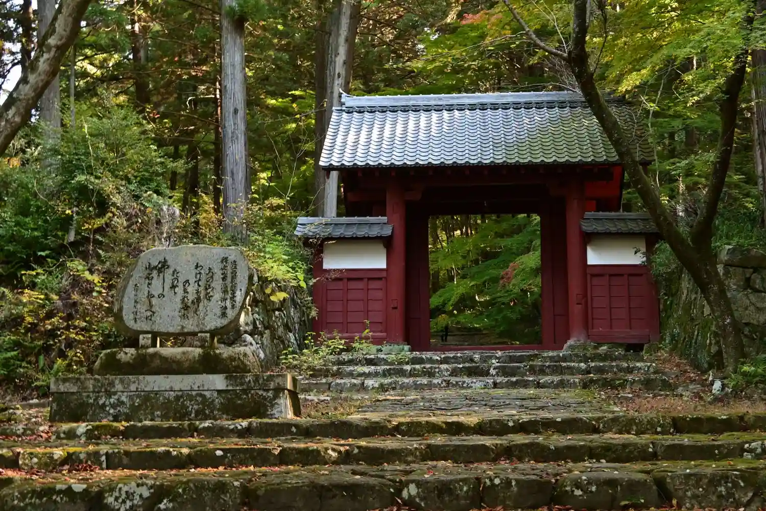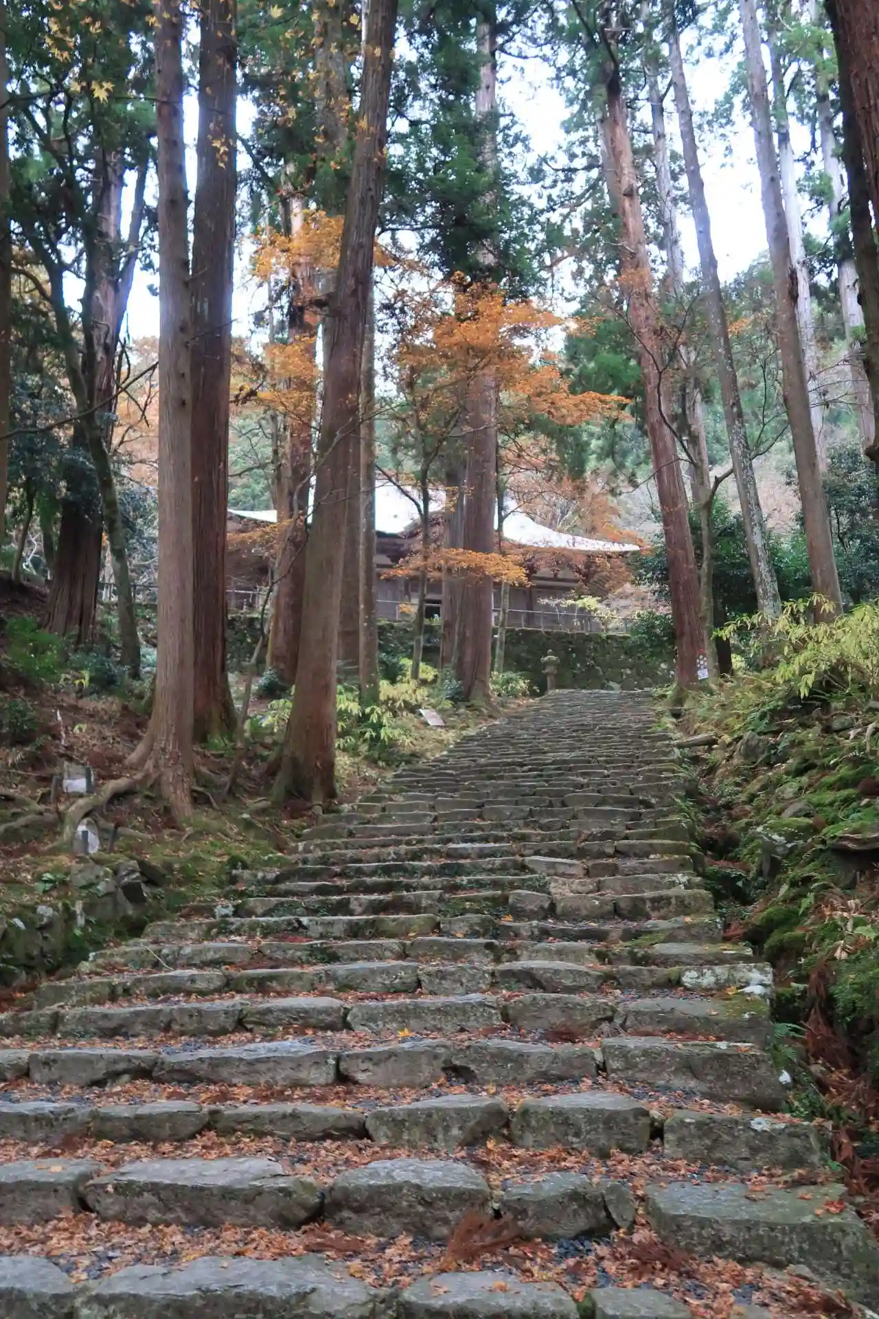 本坊横の石段部分。真っ赤まではもう少し。