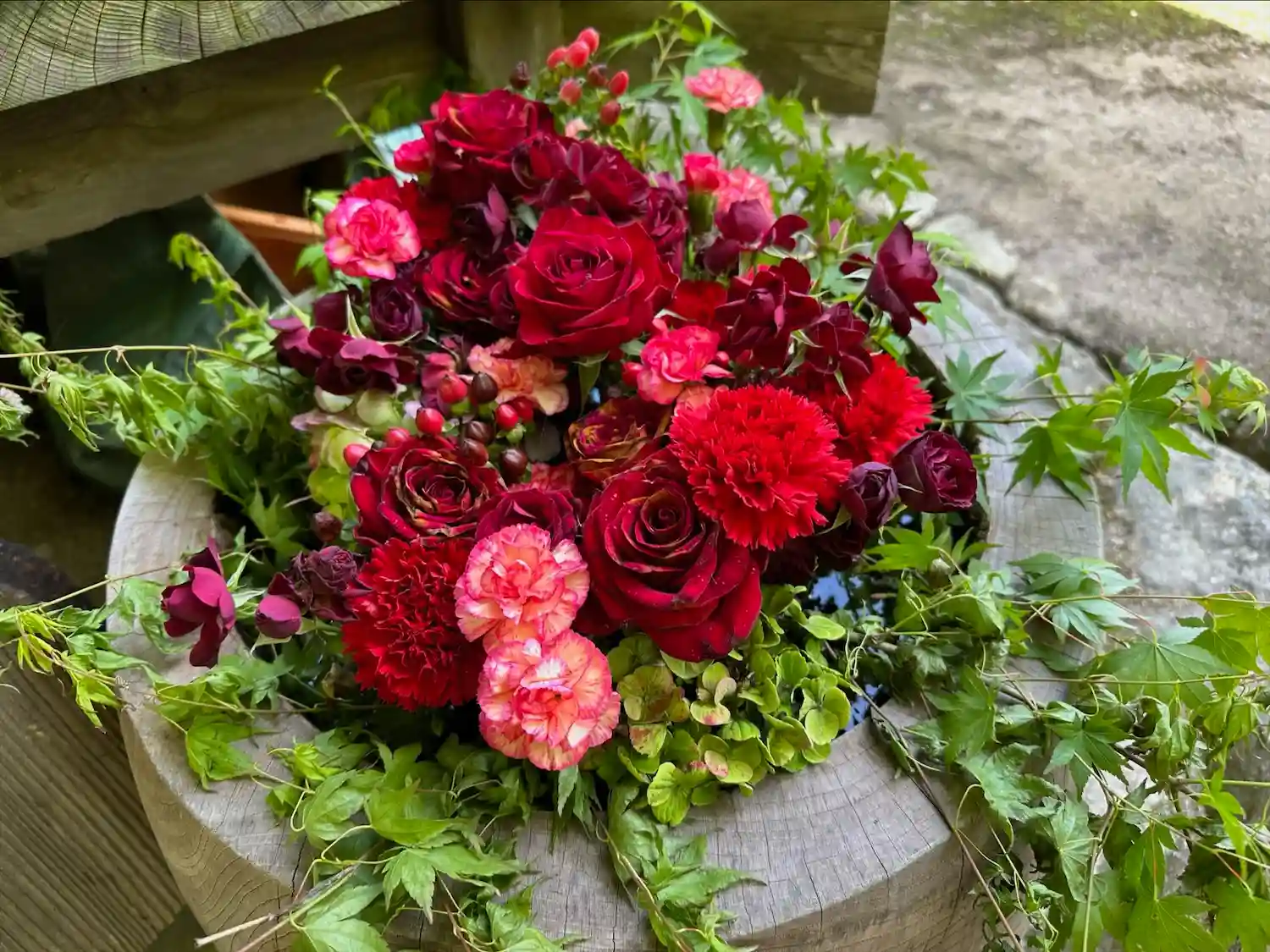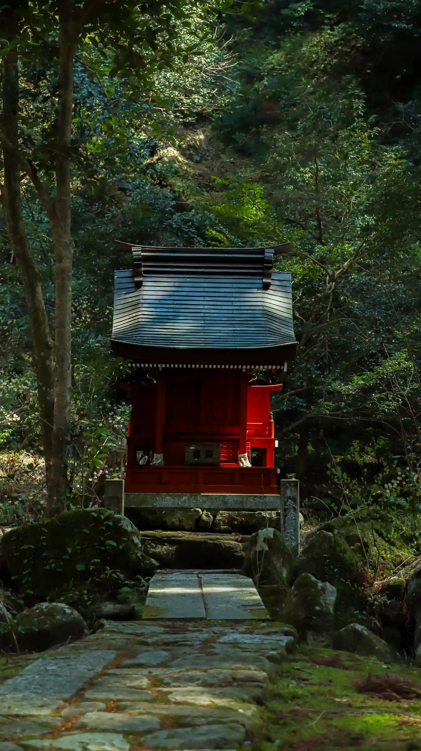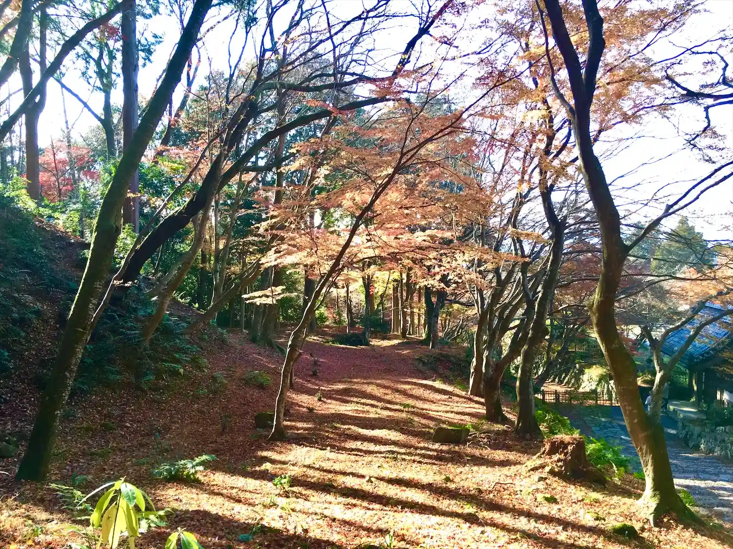 本坊横の石段部分。真っ赤まではもう少し。