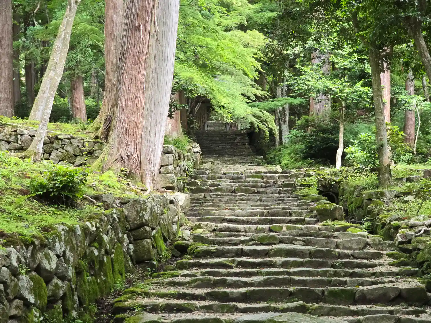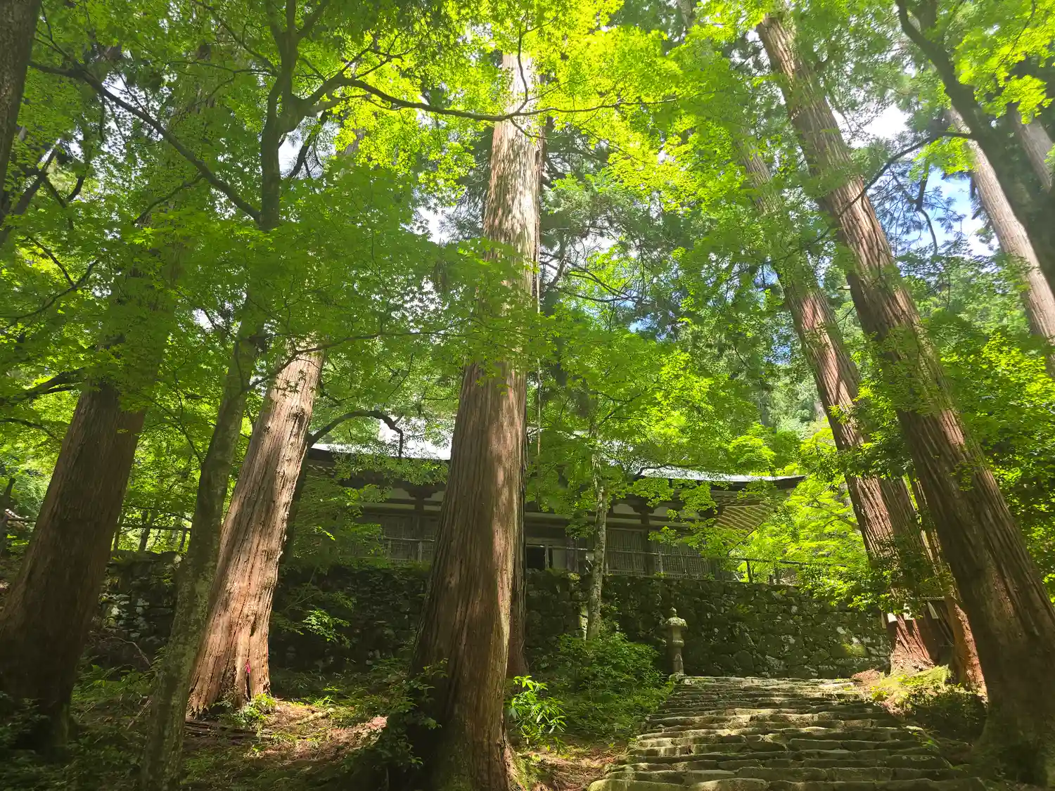 湖東三山の名刹。紅葉が有名ですが、青々としたもみじもとても美しいです。