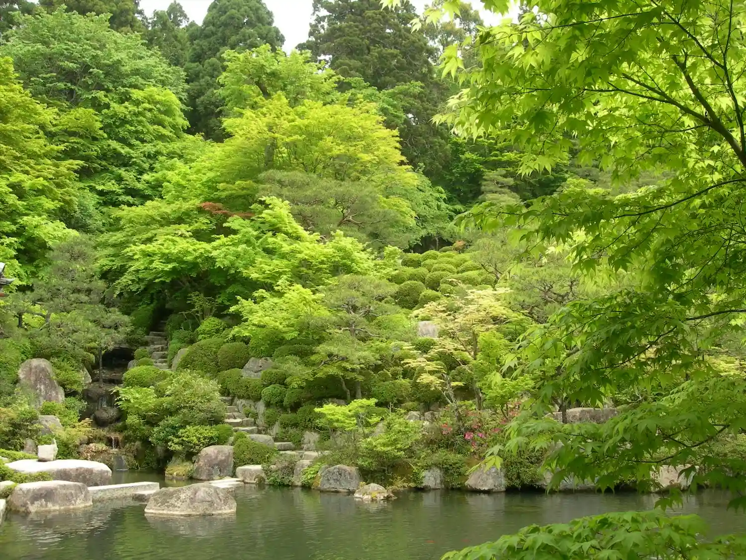 自然を生かした庭園が美しく、静かで穏やかな気持ちになれる…