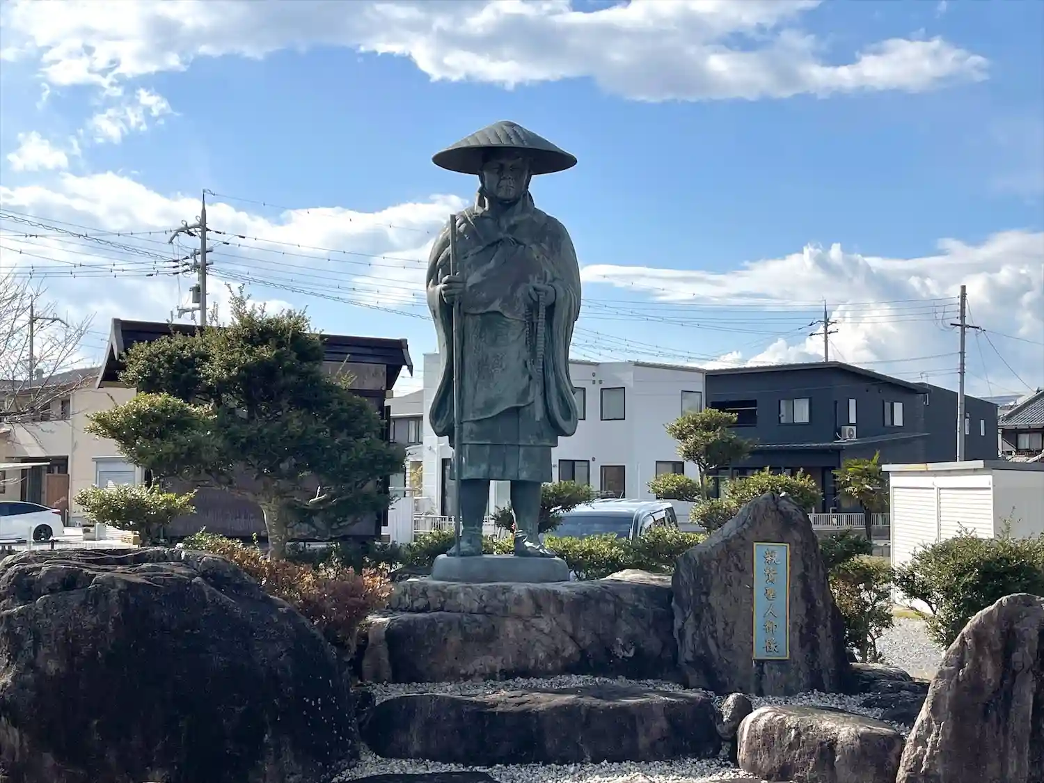 東近江市で神社巡り中に、道路から親鸞聖人のお像を見かけ寄らせて頂きました。