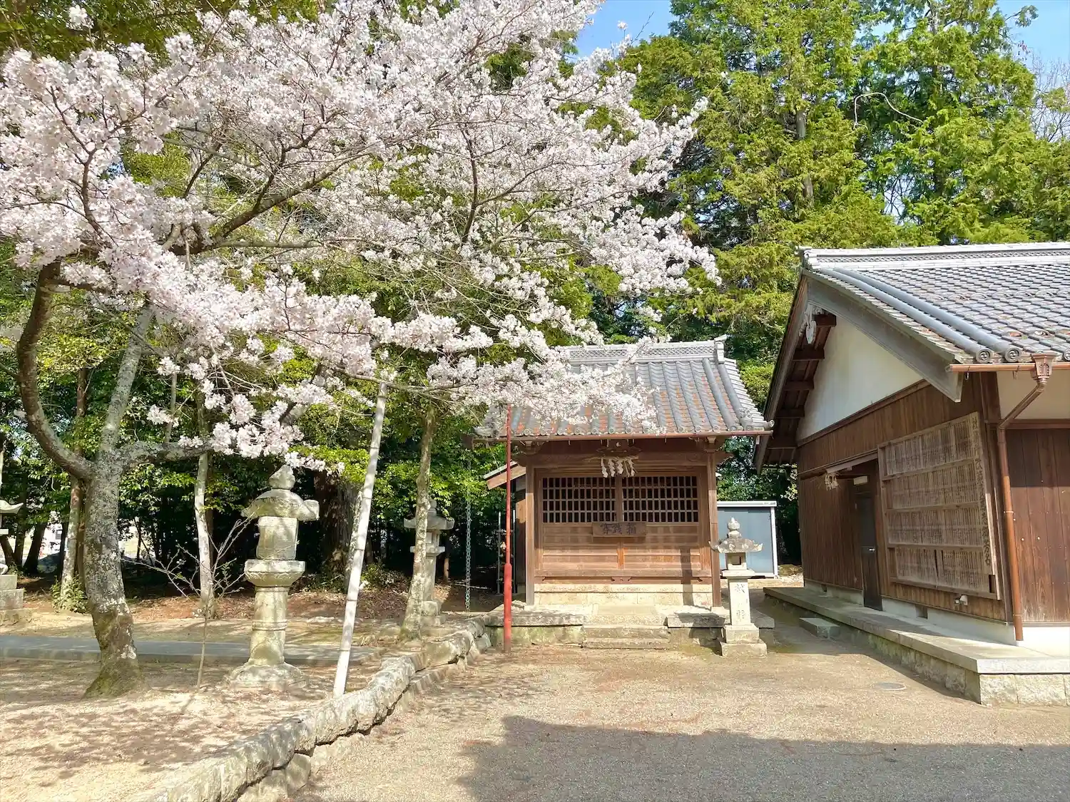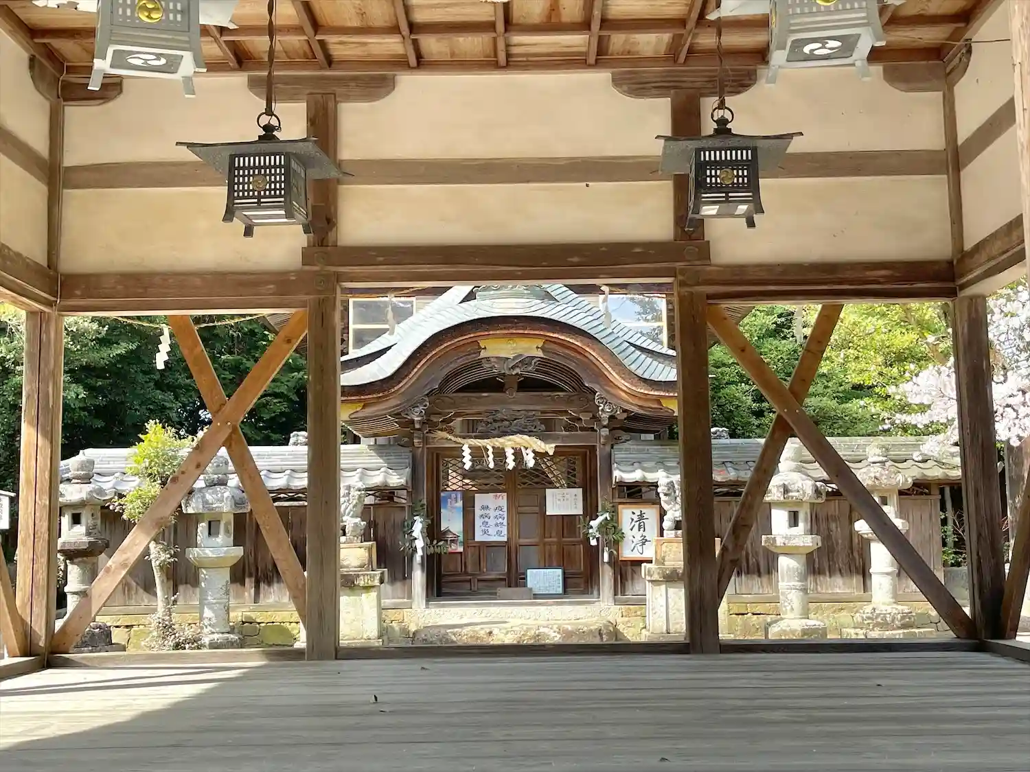 境内には東近江市指定文化財の能舞台があり、この能舞台は、明治26年に鋳物師の竹村猪八郎が、豊臣秀吉の時代に奉納された「竹田の神能」にちなんで寄進したもので、明治から大正にかけて盛んに演能されたそうです。