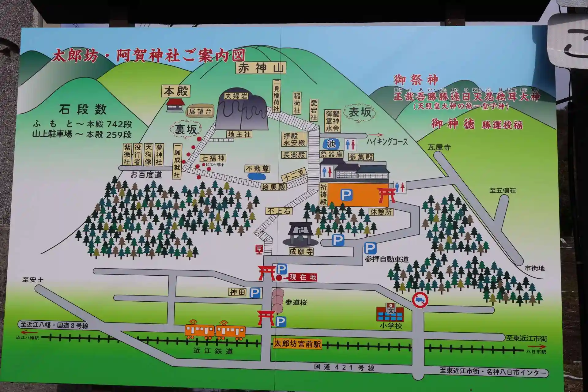 太郎坊宮の石段を登る途中にあります。この横にも駐車場あります。