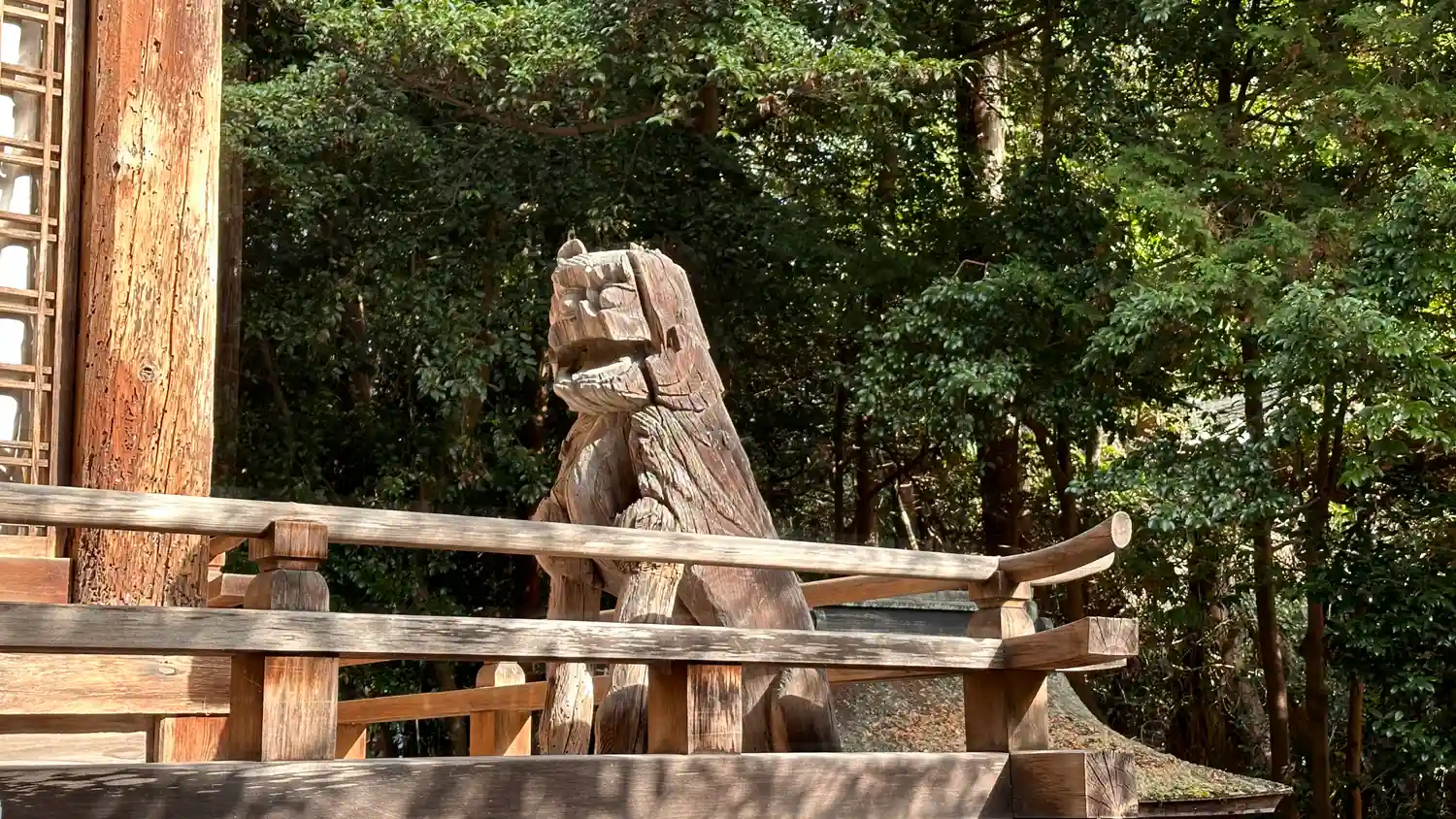 見つけました「狛猿」しかも子連れ! 木製の狛犬もあります 南北朝時代に建立された御本殿と大門はとも…