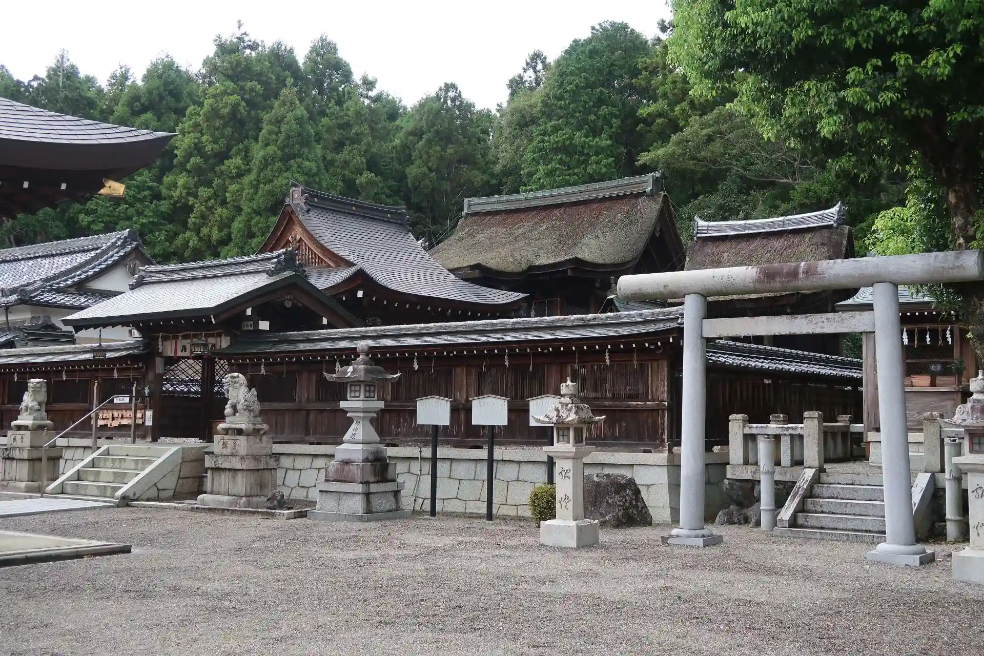 真ん中に東本殿(重文)、右に天神社、左に佐々貴社
