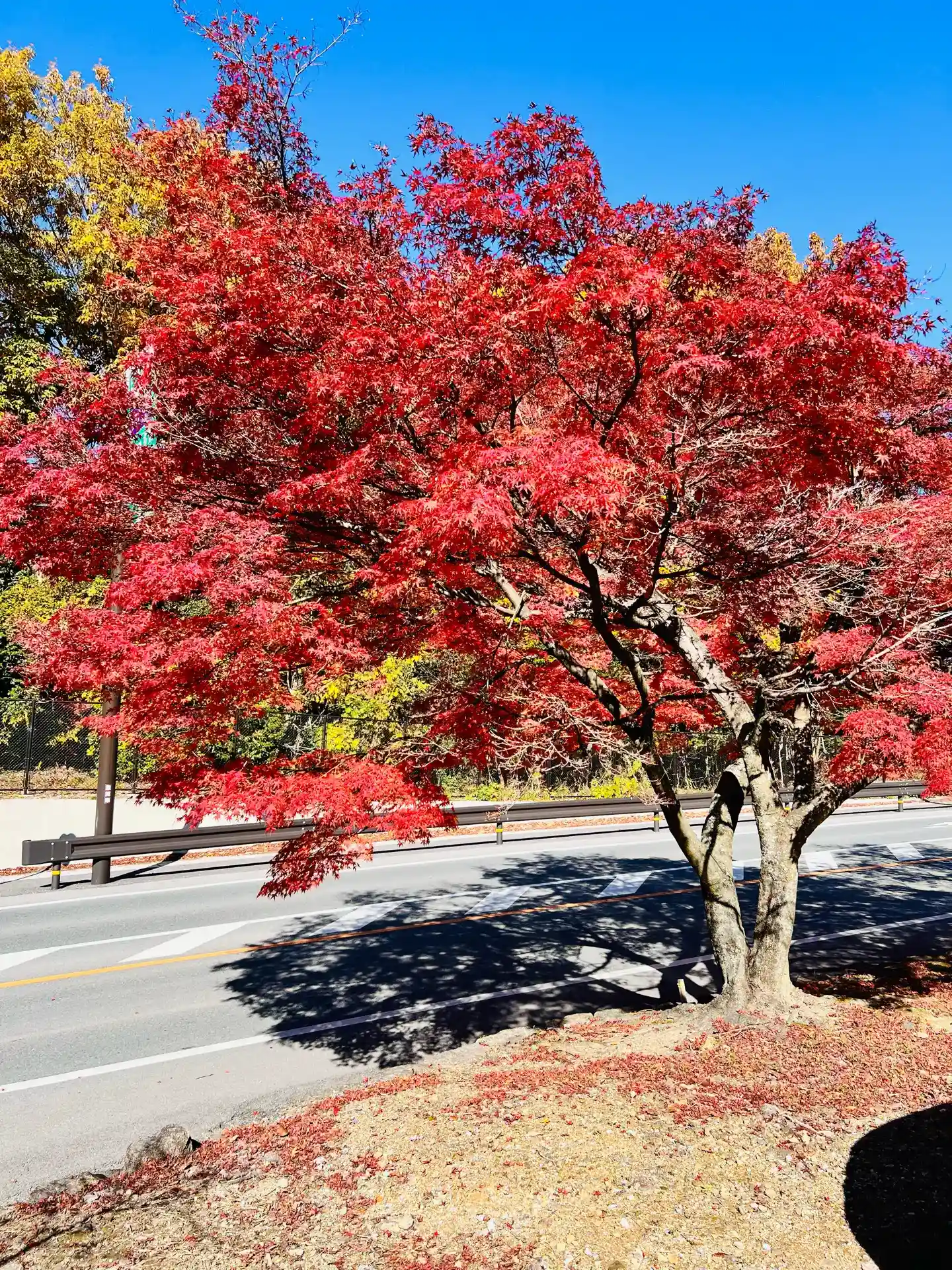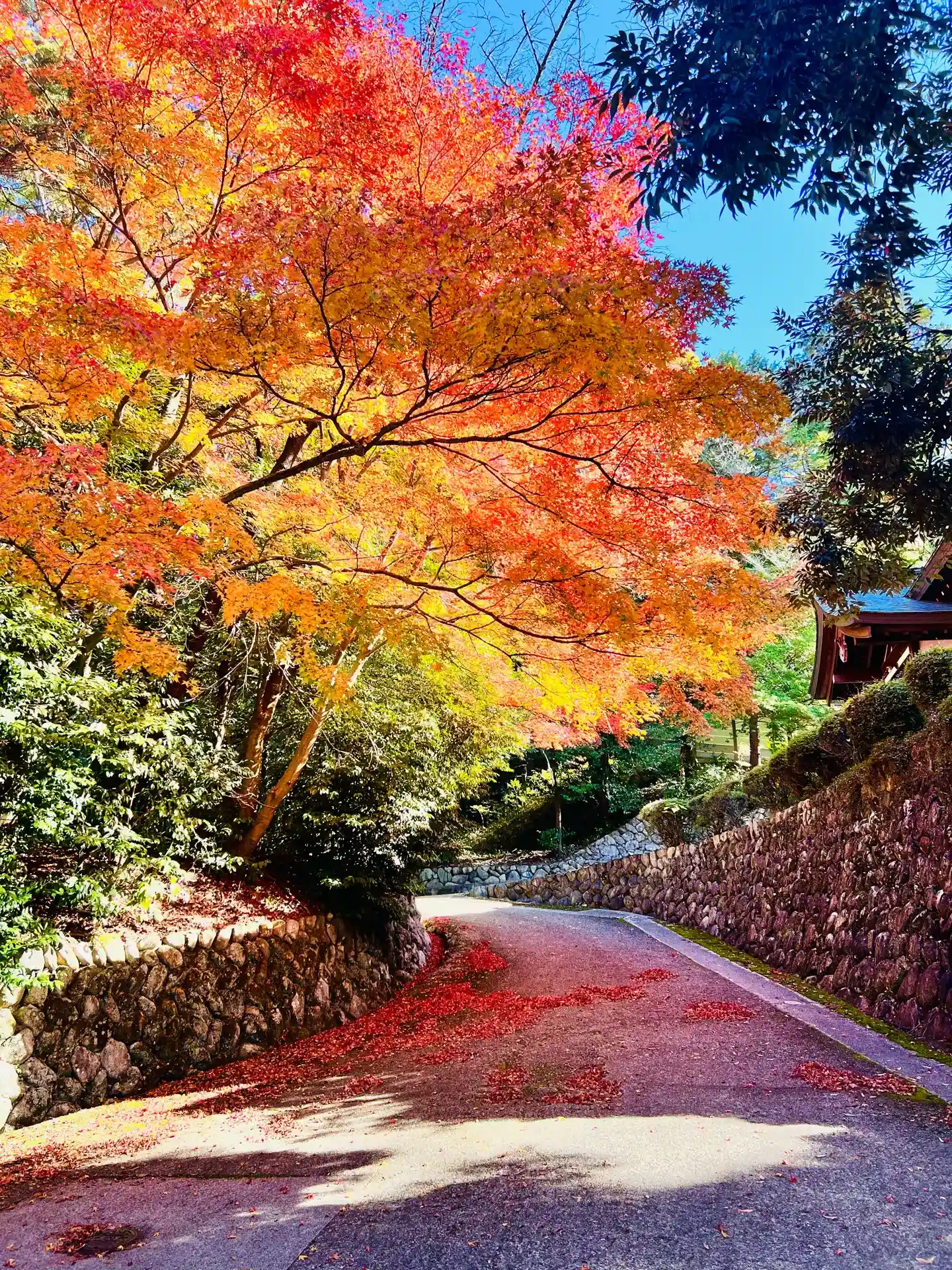 駐車場からゆっくり歩きながら坂道を上がっていきます。道沿いの紅葉が美しく、写真を撮りながらゆっくり上がります。
