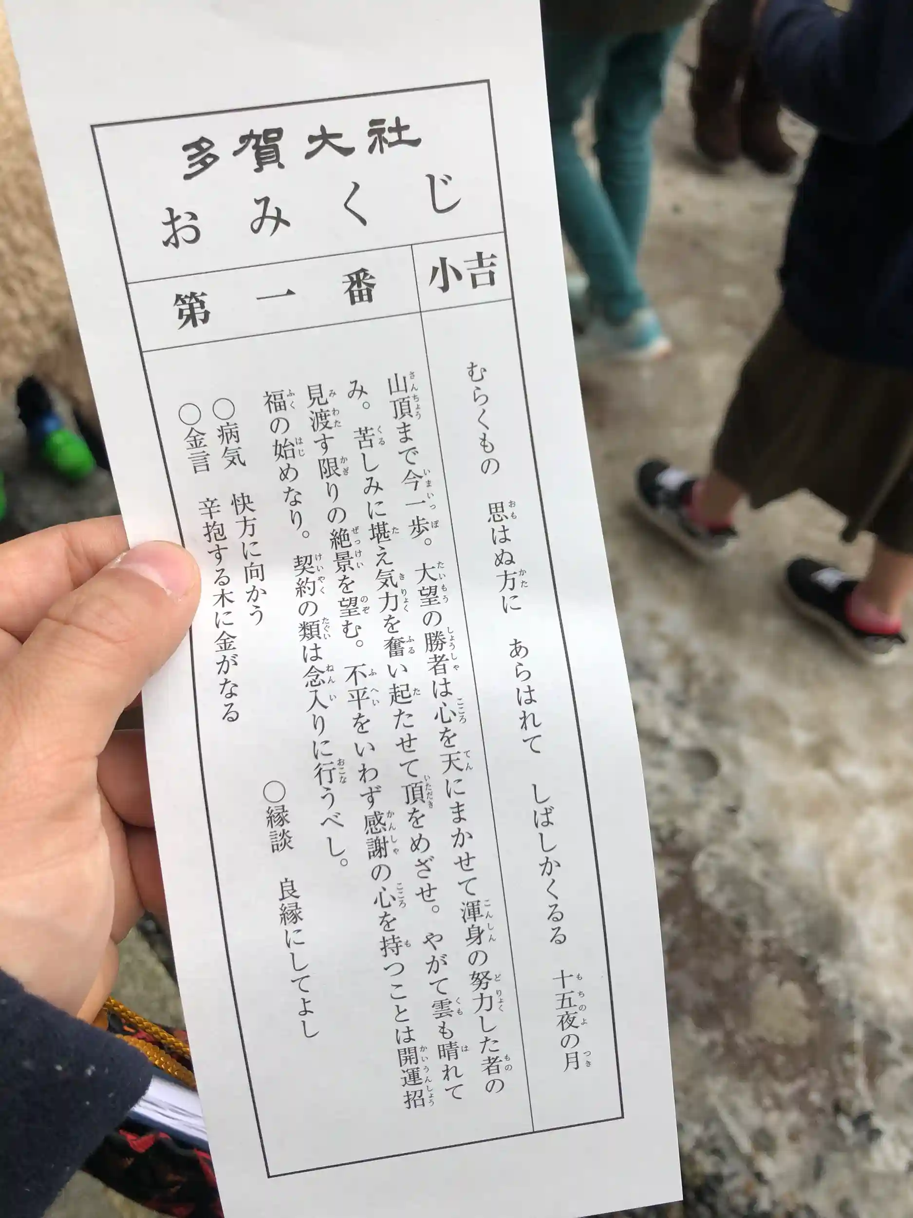 1番が出たので、よっしゃ!天は我に味方するか!と思ったところ、小吉でした。。。