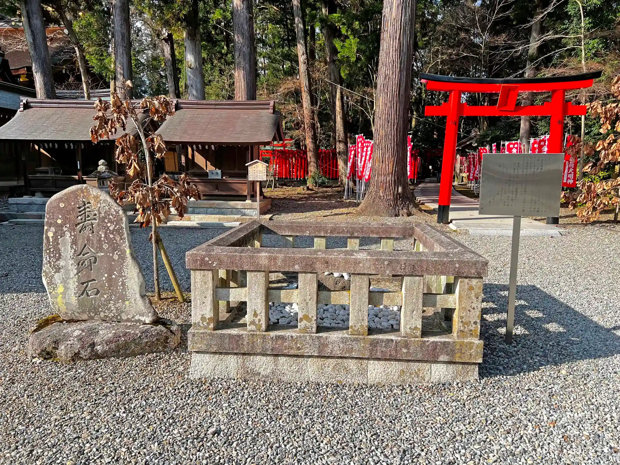 熊野神社・三宮神社社殿、金咲稲荷神社鳥居の南側にある<寿命石>。