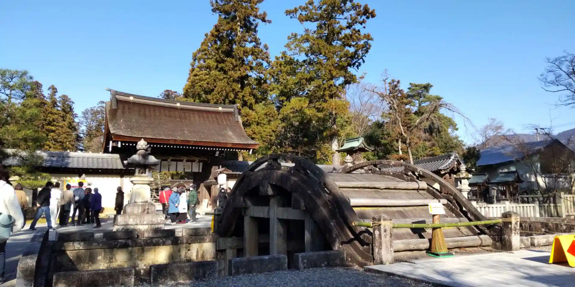 暖かい一日、多賀大社にお詣りしました。びっくりするほど意外にたくさんの方が参拝されていました。神馬舎にも人が並んでいました。お詣りのあと境内のお茶屋さんで善哉をいただきました。伺う前に昼ごはんを食べたのですがそこはやっぱりはずせません。参道も大変賑わっていました!