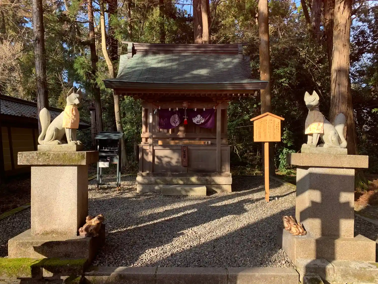 お狐様の、足元にはカエルが🐸