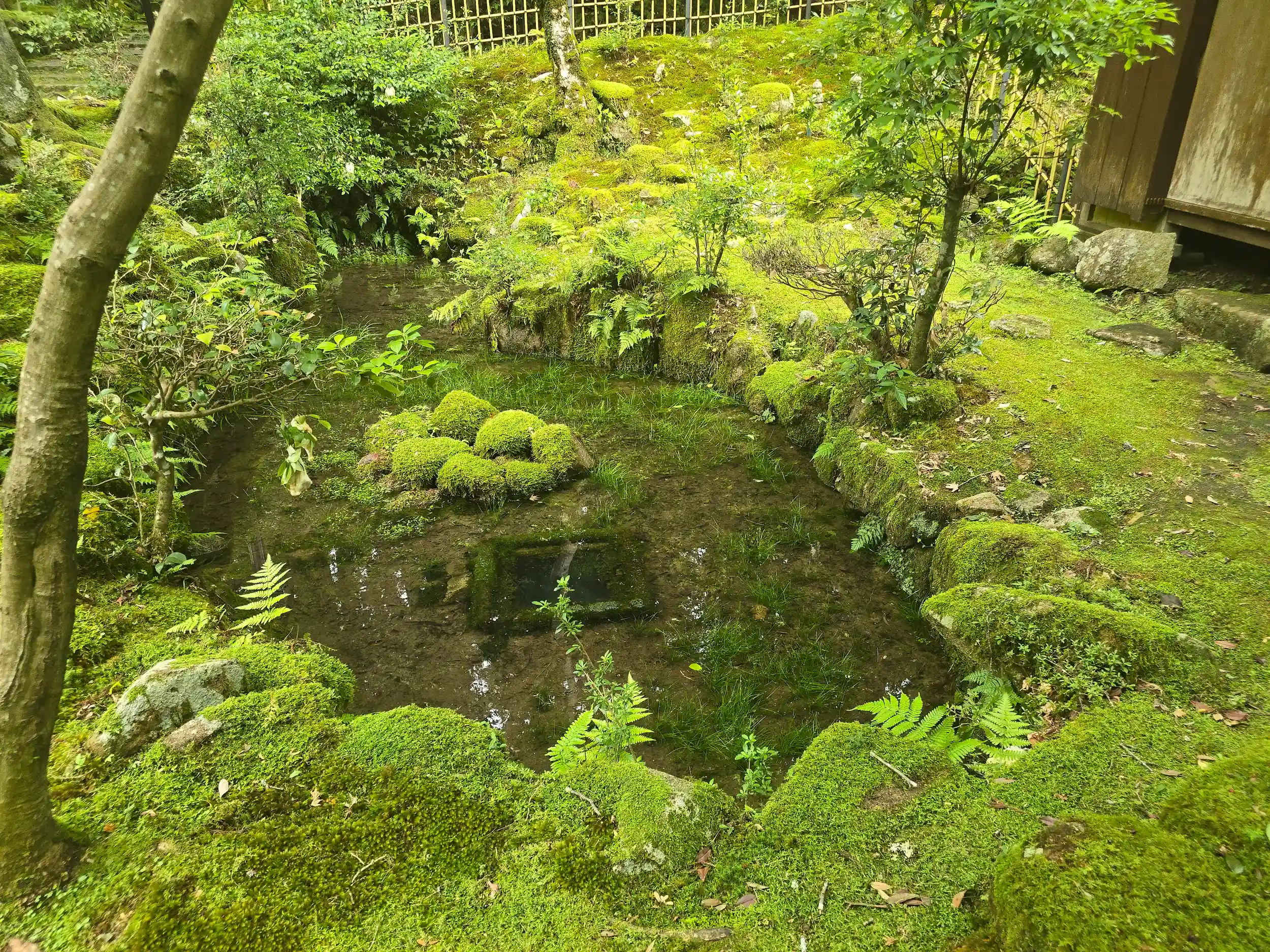 前庭は深緑の苔と青紅葉で目に沁み入るような景観を楽しませてくれました。