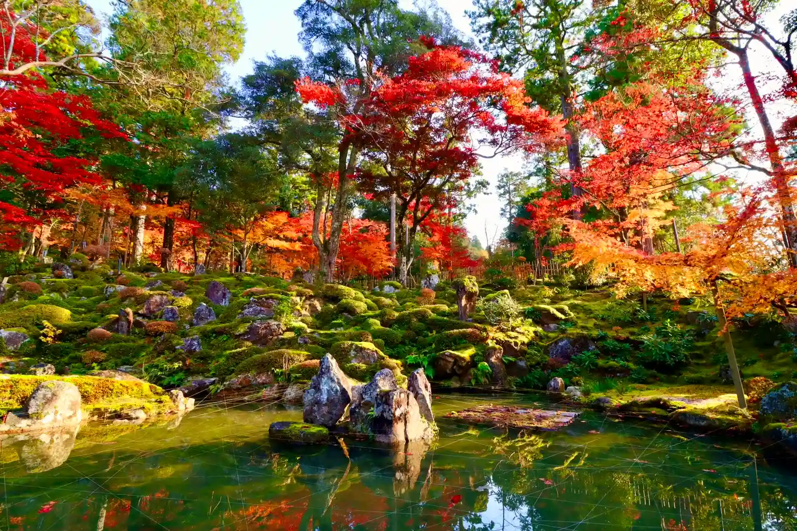 続いて西明寺。こちらも紅葉の名所湖東三山の一つです。苔の緑がとてもきれいで1,000本にも及ぶ赤や黄色の紅葉を引き立てます。本当に素晴らしい!癒し度MAXです。