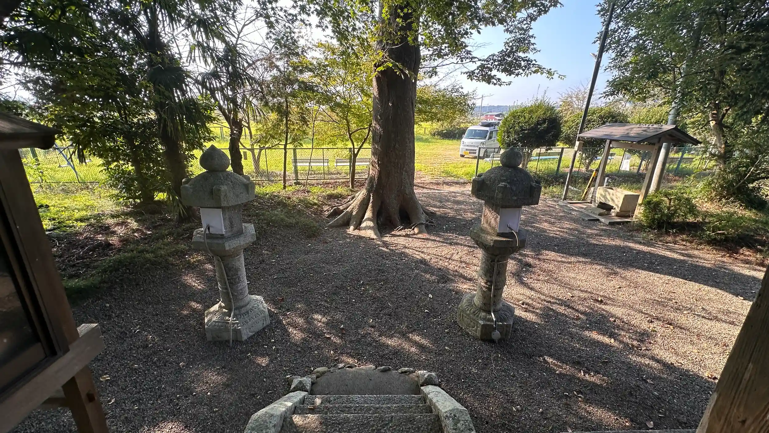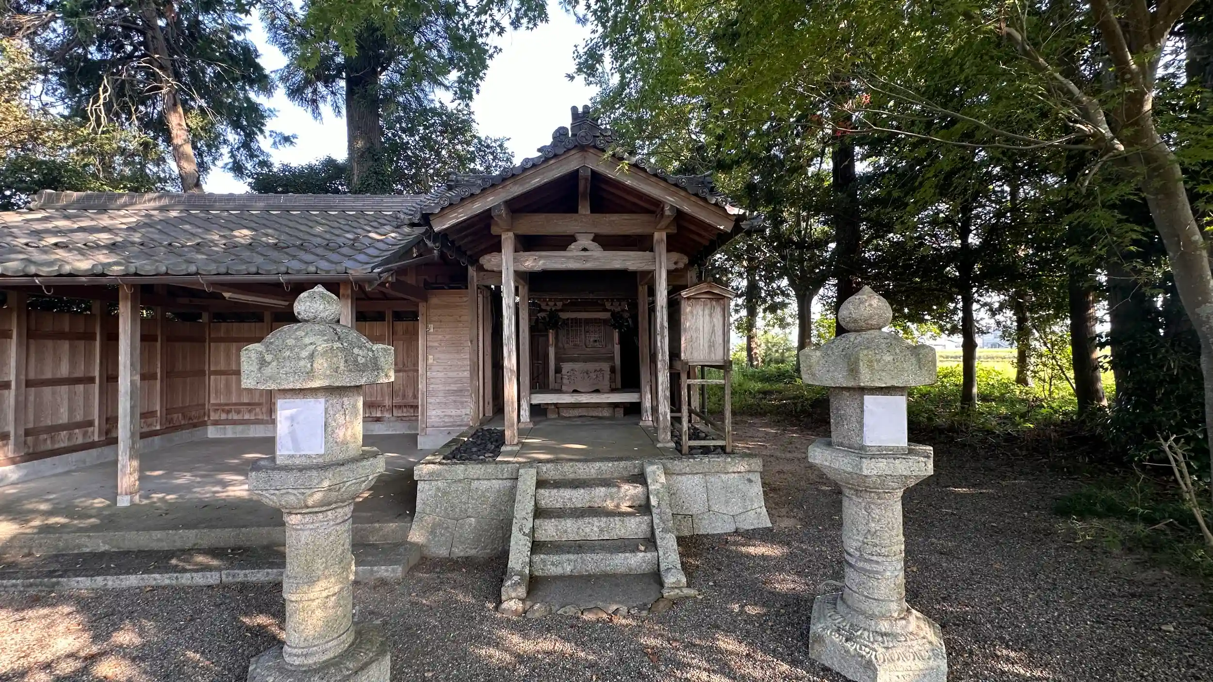 御祭神 高皇産霊尊、 天照皇大神、 素盞鳴尊 、瓊々杵尊 、誉田別尊。本殿 一間社流造、小さな集落の端に鎮座されています、少し変わった社殿の形でした。