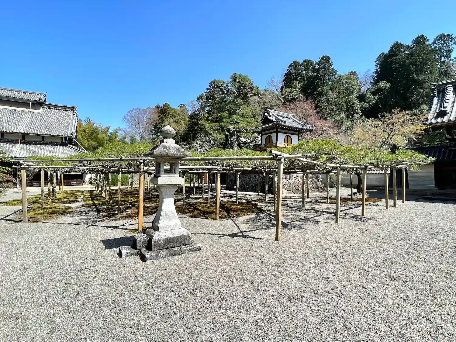 また境内の南隅にある庭園は、高田敬輔(たかだけいほ)が造ったといわれ、日野町では最も古く由緒ある庭園として名高いです。築山には梅と桜、紅葉やいちょうが数十本植えられ、特に紅葉の季節になると紅葉の紅といちょうの黄色が見事に染め分けられ華やかな美しさを添えます。