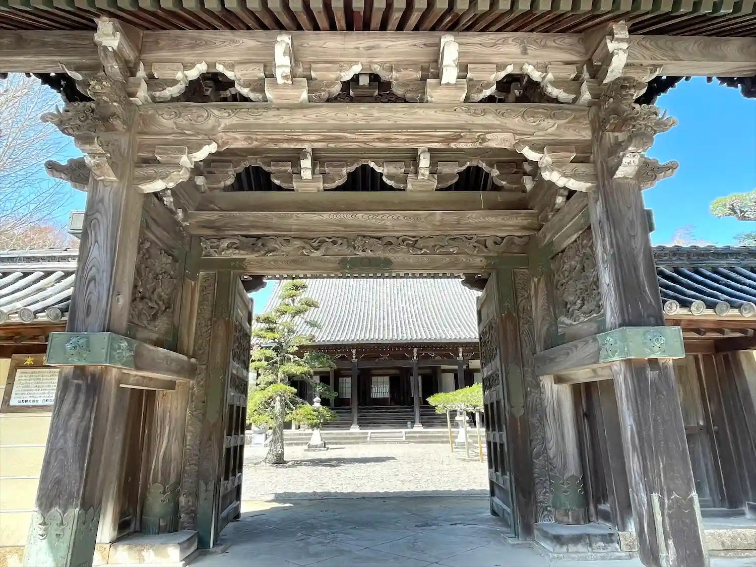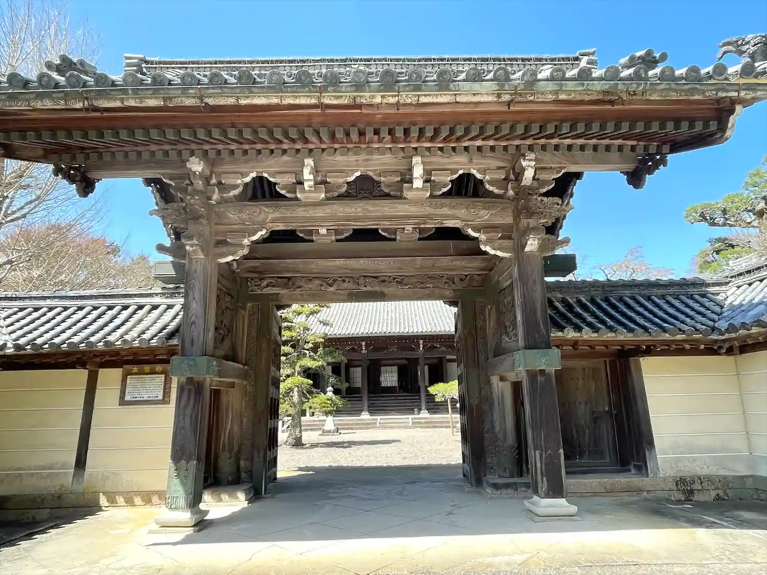 東本誓寺は広大な境内に豪壮な堂宇が建立され、境内にあるクロマツの巨木は、鶴が翼を広げて飛ぶ姿に似ていることから「青鶴松(せいかくまつ)」と言われている名木です。