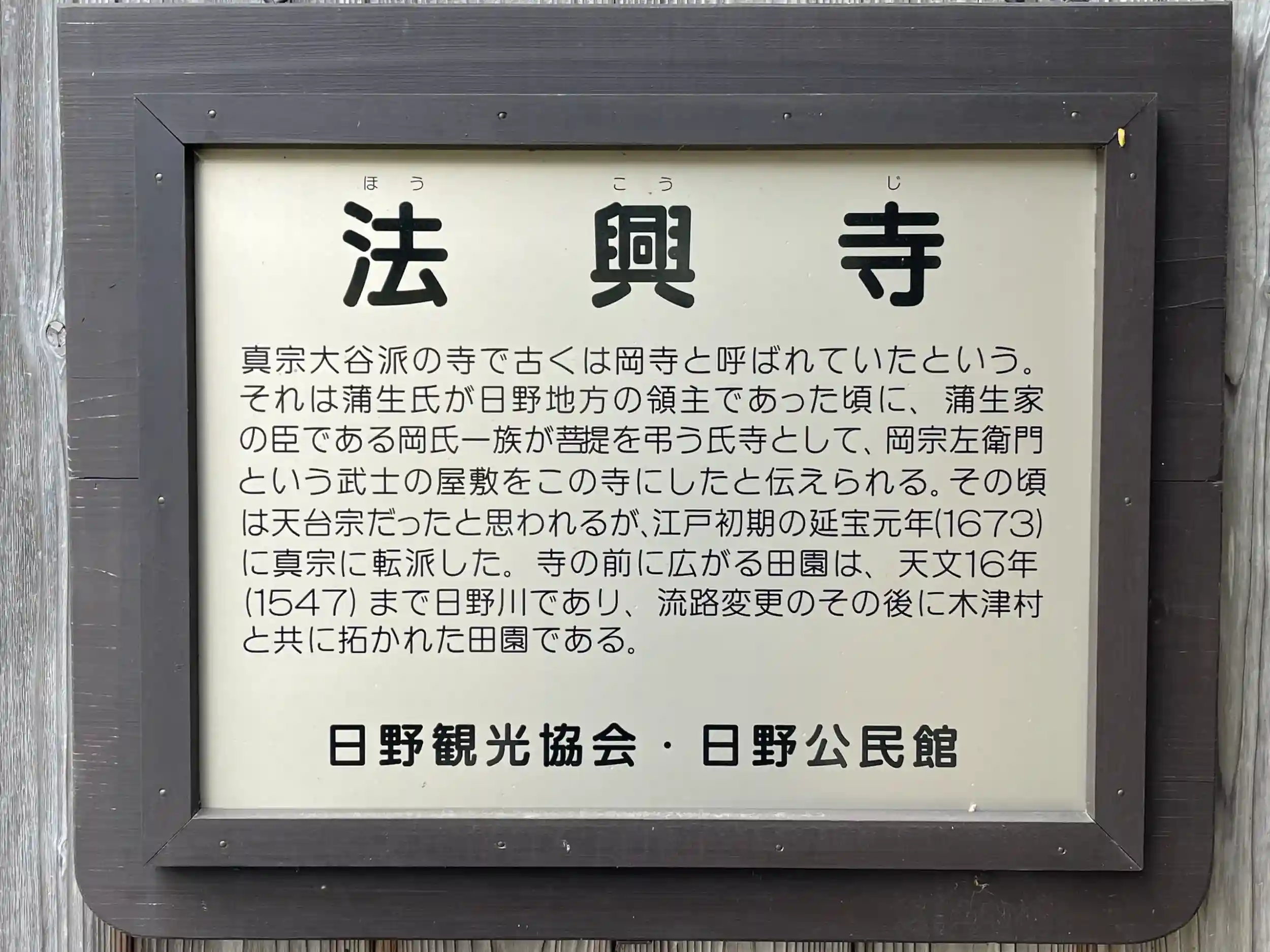 蒲生氏が日野地方の領主であった頃に、蒲生家の臣である岡氏一族が菩提を弔う氏寺として、岡宗左衛門という武士の屋敷をこの寺にした為と伝えられています。