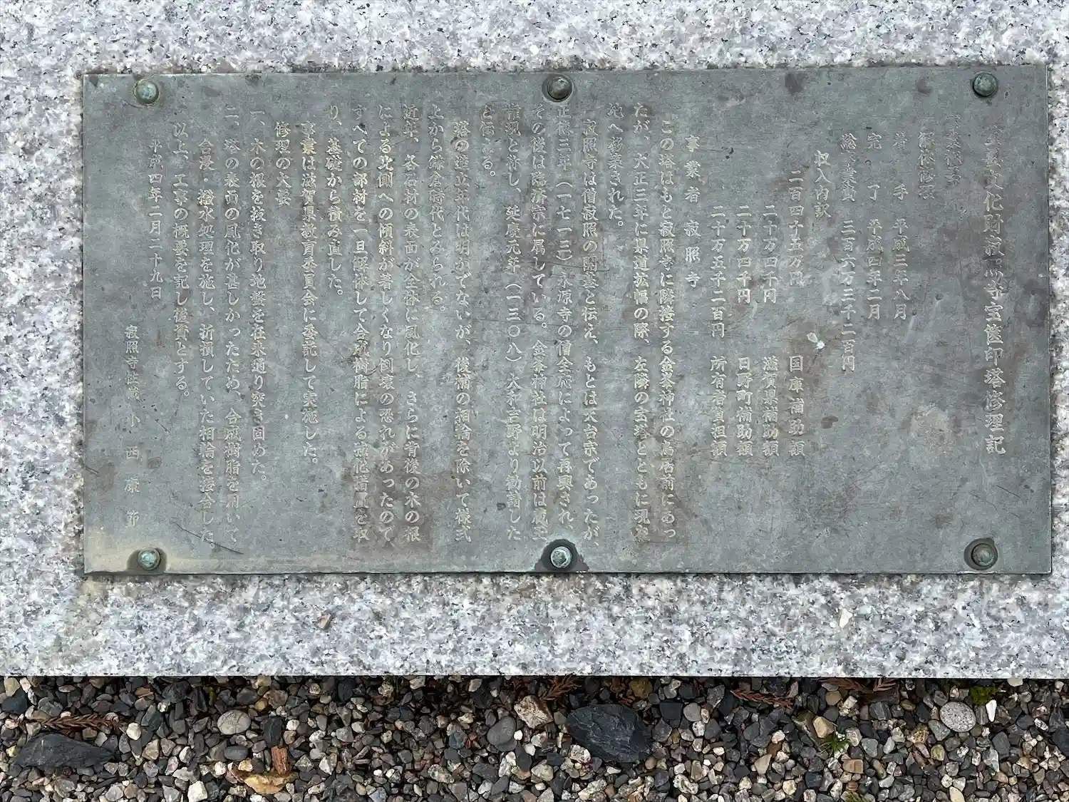 国指定重要文化財の宝篋印塔と町指定文化財の石造宝塔は、東隣にある金峯神社にあった物が移設されたものです。