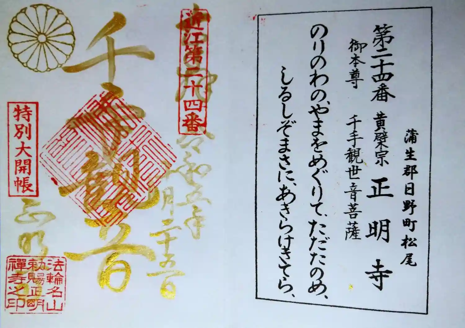 近江西国三十三所24番札所の御朱印。書き置きです。