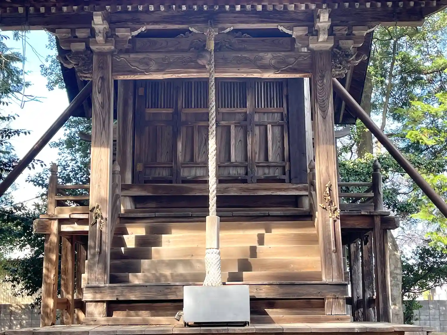 本殿、祝詞殿、中門等は神宮御遷座の古材によって建設されました
