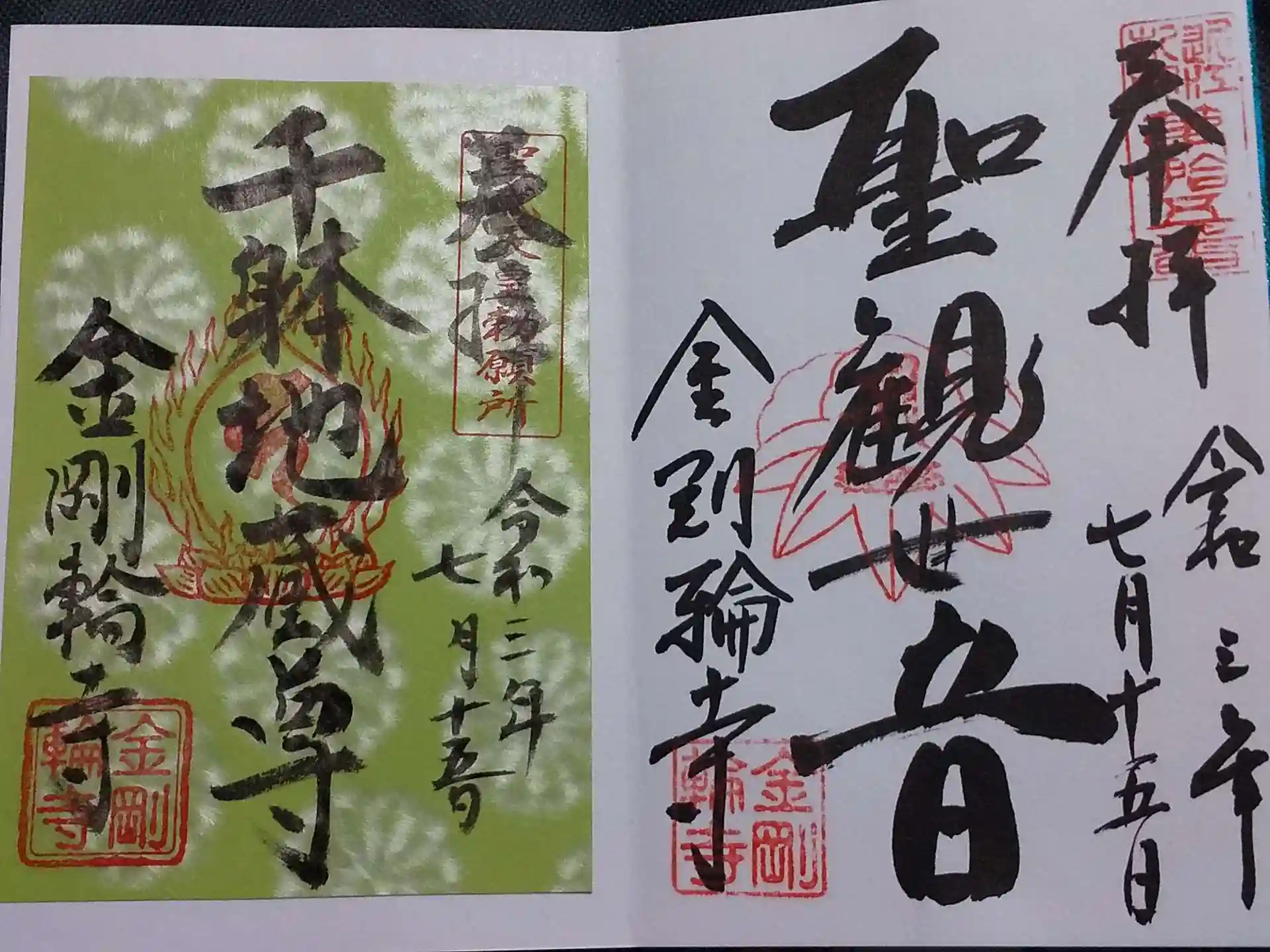 いただいた御朱印は聖観世音と千躰地蔵です。