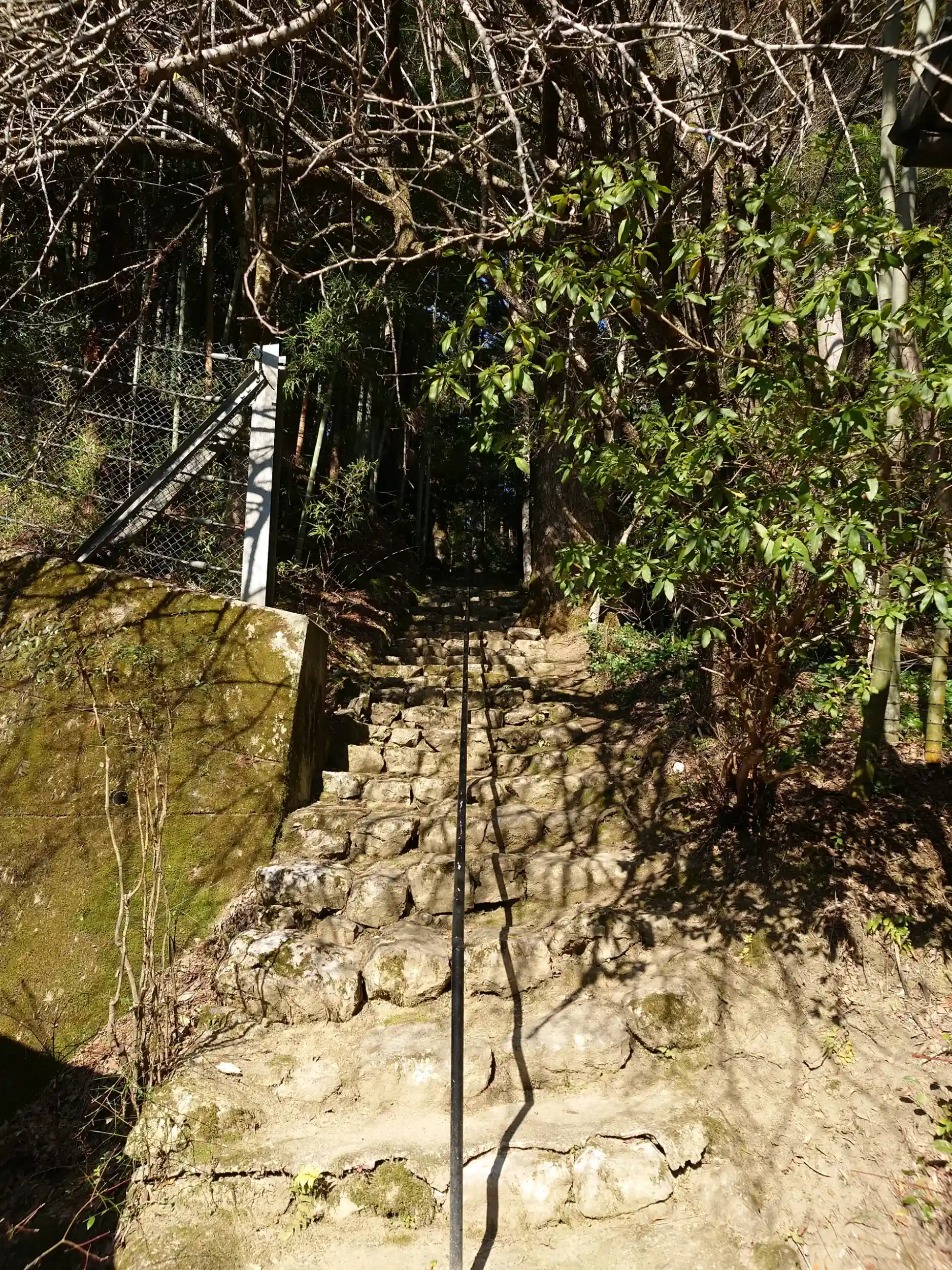 集落の中にある狭い路地を通って、階段を登るとあります。