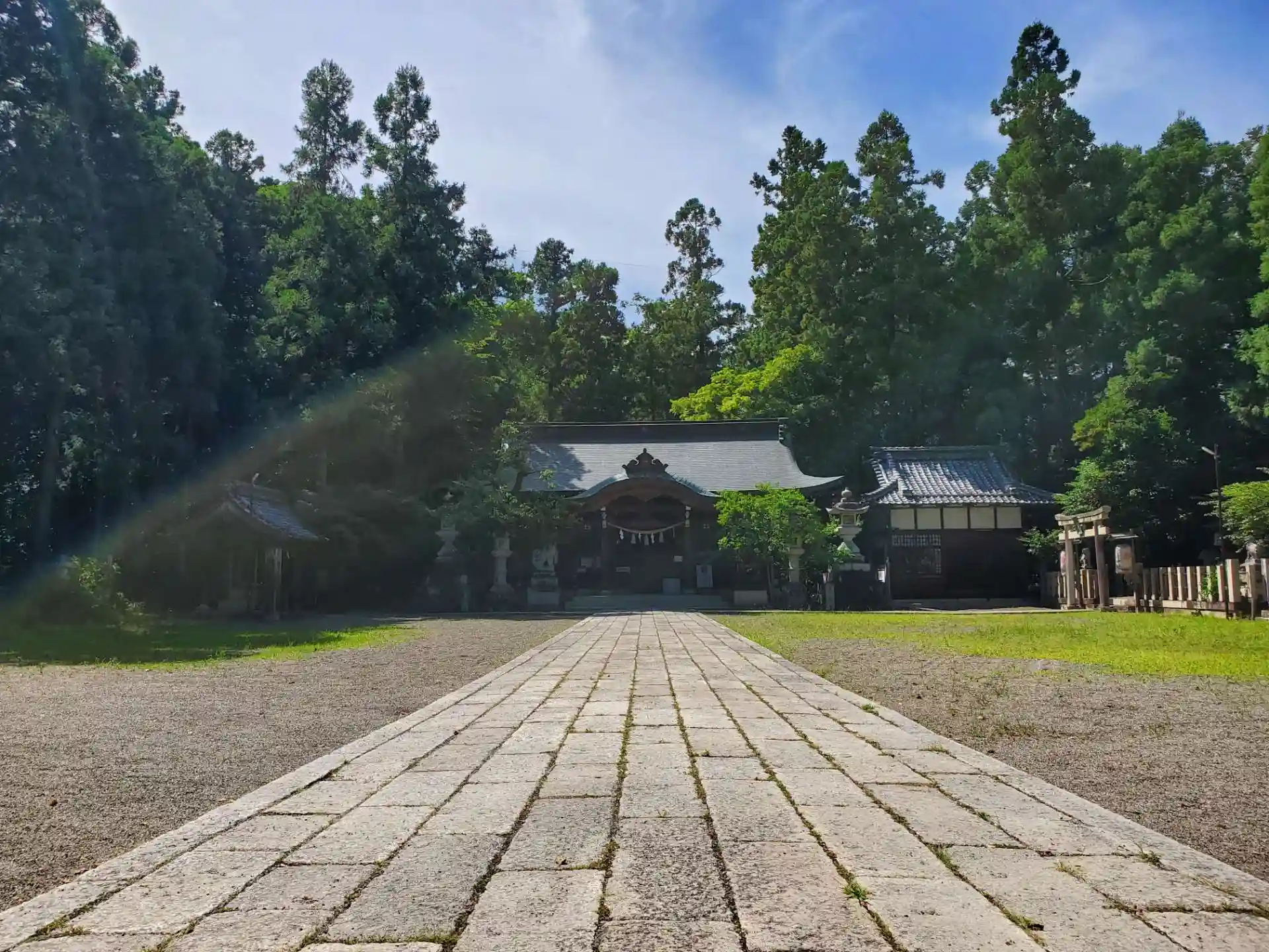 旧中山道に面する神社で、まっすぐ伸びた長い参道が印象的でした。