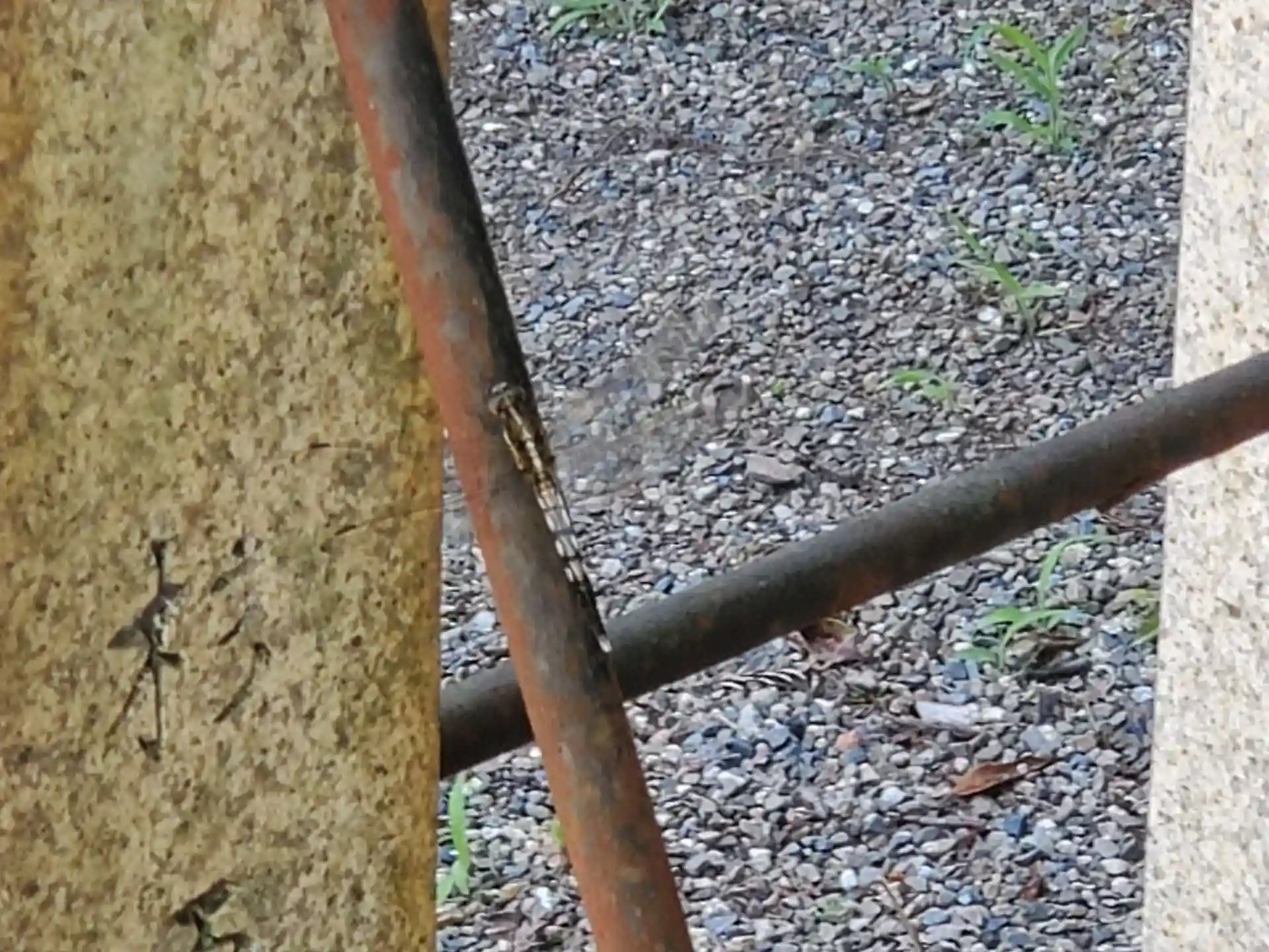 とここで、一匹のトンボがヒラヒラと目の前に現れて止まったところをパチリ