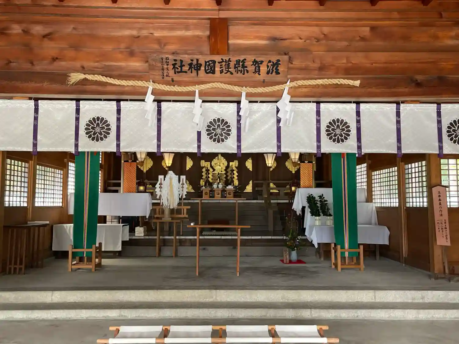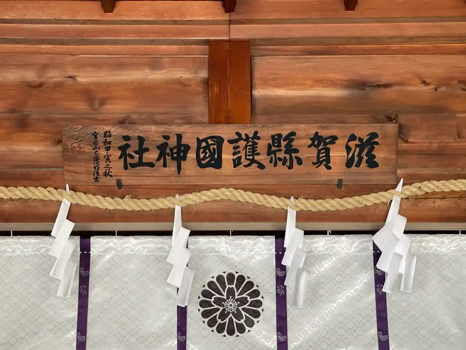 滋賀縣護國神社の社務所前に護國神社巡礼成就証が掲示されていました。