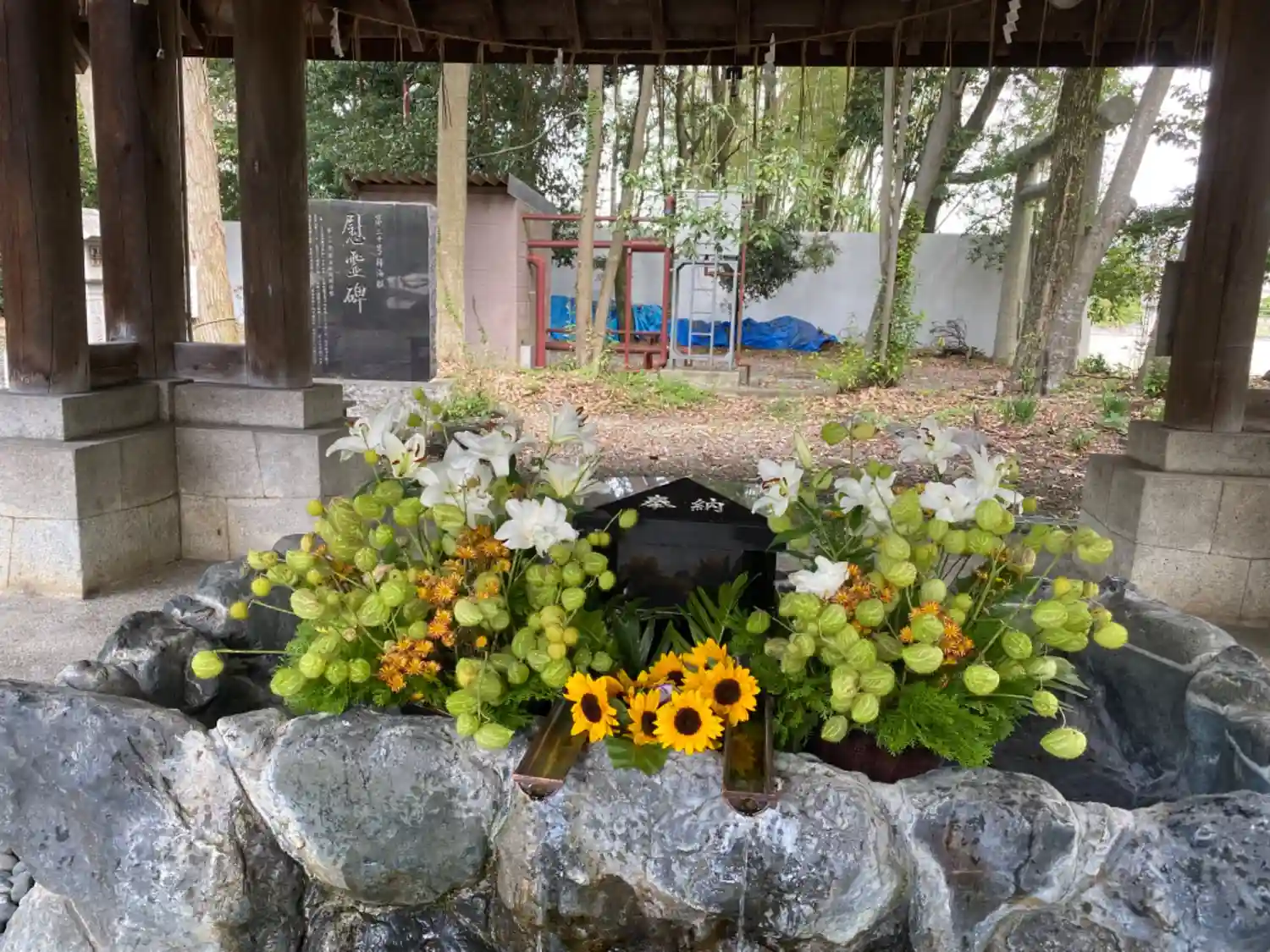 滋賀県護国神社⛩。写真には撮れなかったですか手水舎にお花をすごくきれいに飾ってました。