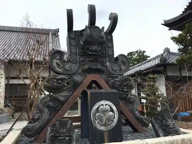 🔹本尊の阿弥陀如来立像は、大坂夏の陣の時、淀君の念持仏(ねんじぶつ)と思われる仏像を持ち帰ったもので、鎌倉時代の作といわれています。その他、墓所には木村重成の首塚、唐人門、鐘楼、白砂に巨石を配した庭園があります。
